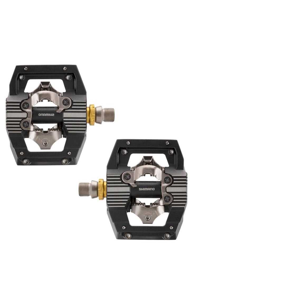 A mud-shedding SPD pedal built for the rigors of off road-riding. With SPD compatible shoes, you can harvest energy on the up-stroke for more power and control on the trail. Aluminum body with steel retention springs and plates; chrome-moly spindle with sealed bearing cartridge. Compact, two-sided design for easy clip-in. Adjustable clip release tension suits any preference. Better mud and debris shedding than any other pedal in its class. Includes Shimano SPD cleats, washers, and bolts for SPD compatible shoes. Follow all included instructions. Practice releasing and clipping in before trail riding. Weighs 380 g (per pair).