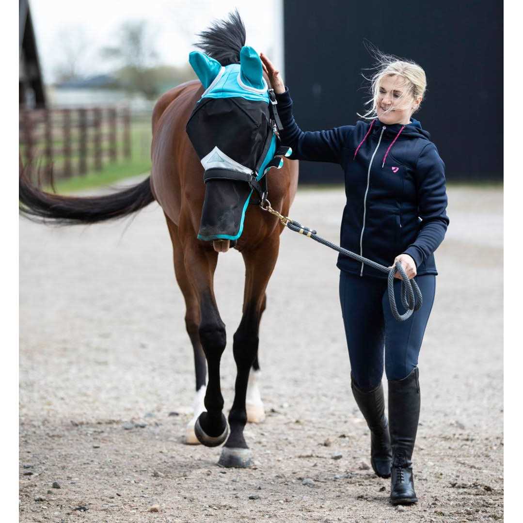 A fine mesh fly veil complete with air stream fabric ears, and nose extension for excellent protection against small flies and midges. The ergonomic shaping and fleece padding along the seams keeps the fly mask away from the eyes and reduces gaps. Adjustable touch close safety straps allow for a snug fit.Hand wash cool.