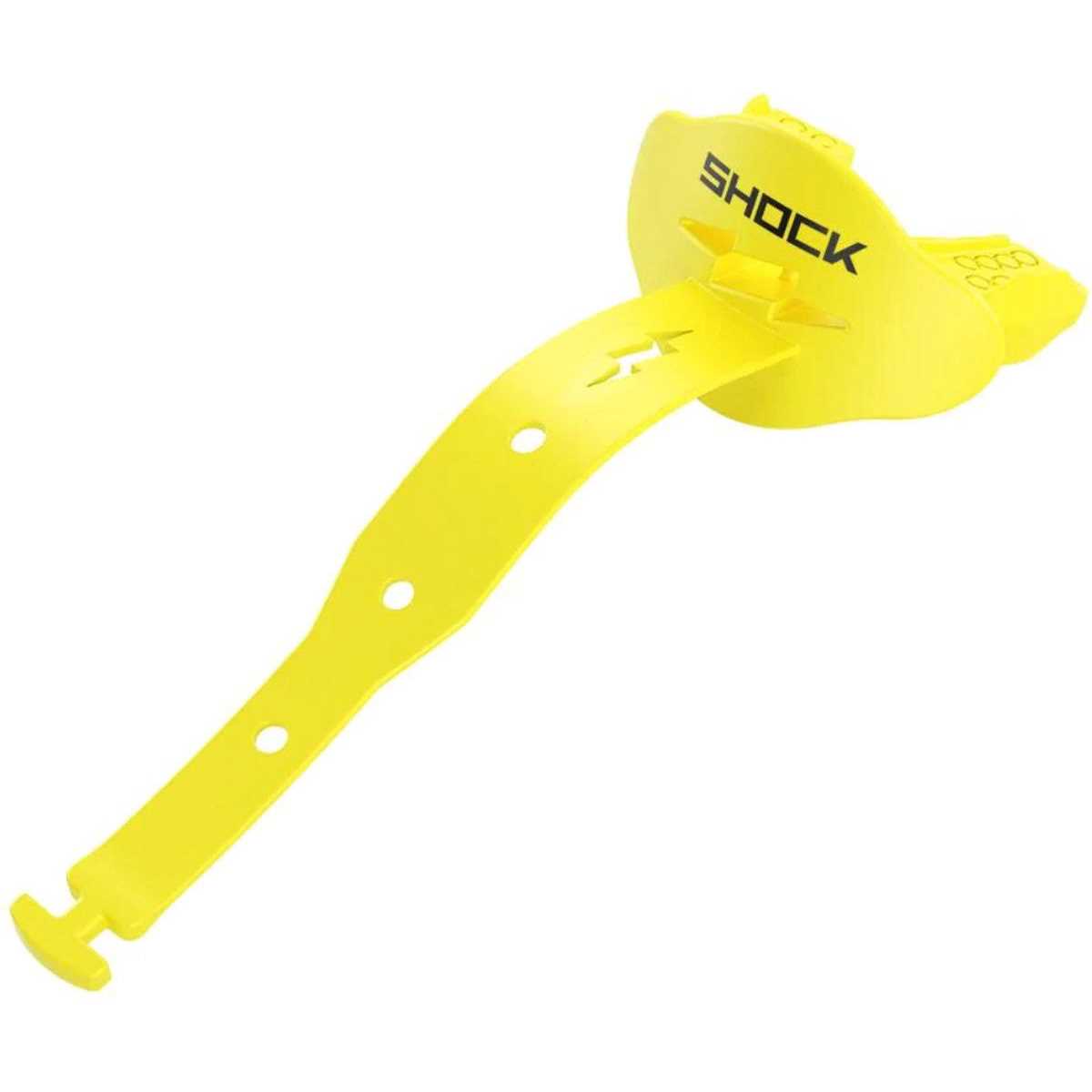 Lightning bolt EasyFlow breathing channel. Integral bite pads help absorb energy upon impact. Proprietary shock doctor polymers. Built-in tether to connect to mask. Easy no-mold instant fit. Works with braces.