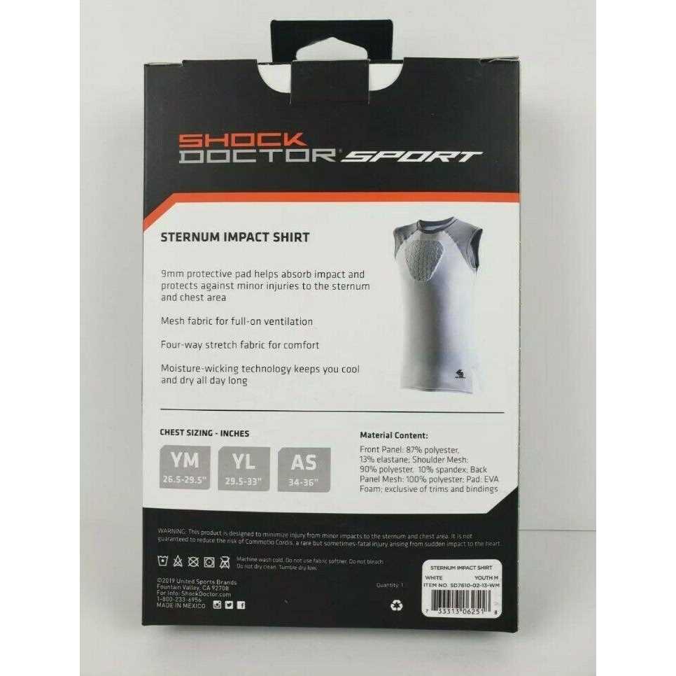 Shock Doctor Sleeveless Padded Sternum Shirt for Chest and Heart Protection – White – Youth Medium