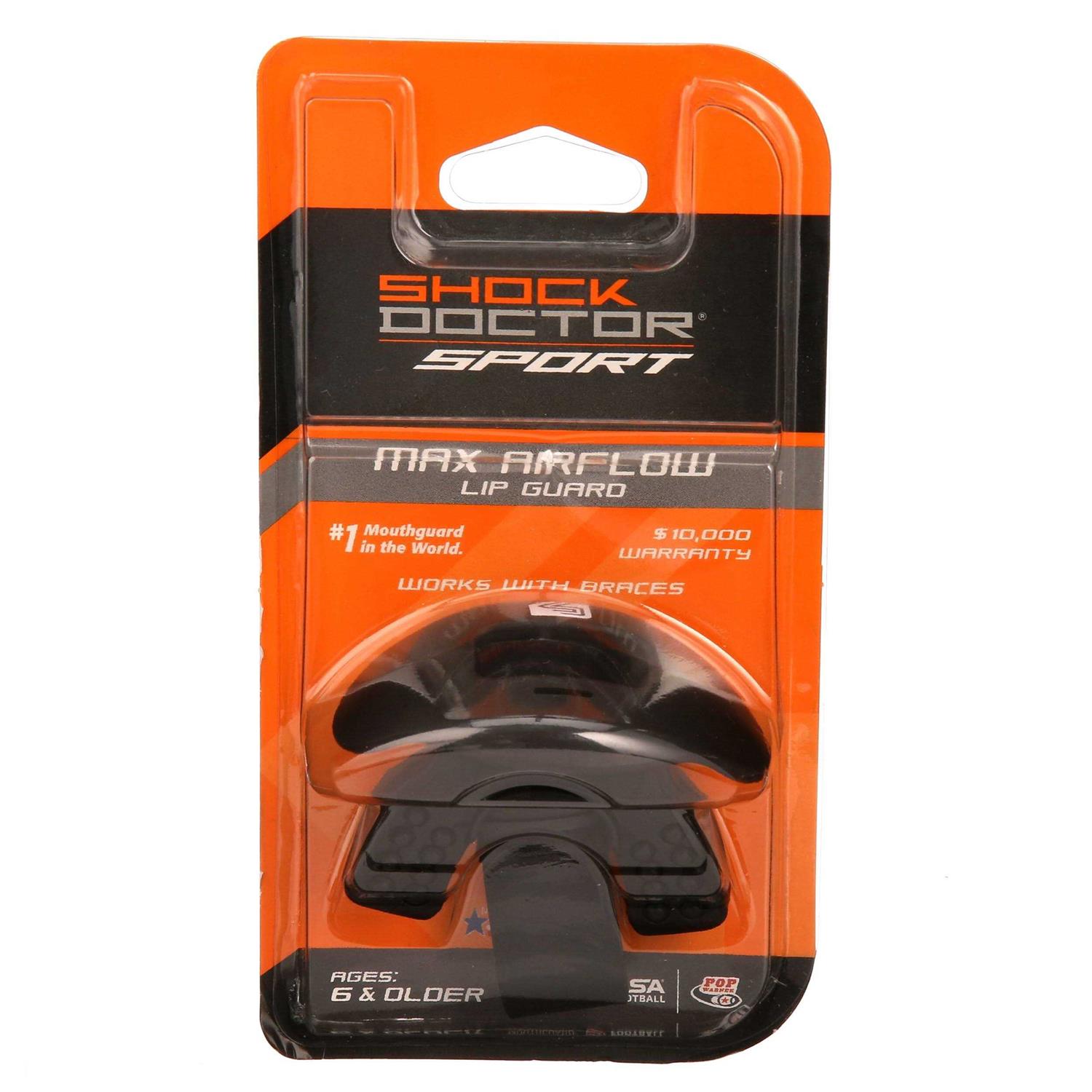 Shock Doctor Max Airflow Sports Lip guard, One Size Fits Most, Black is the Oxygen King of all the Lip guards. Take a deep breath of 10% more flow capacity via our Airflow breathing channel. The updated design and platform relax the jaw and prevent teeth from blocking the breathing channel, adding even more flow capacity. Our flexible, proprietary Shock Doctor polymers and integral bite pads ensure max comfort and easy, no-mold fit. No more winded in the end zone.