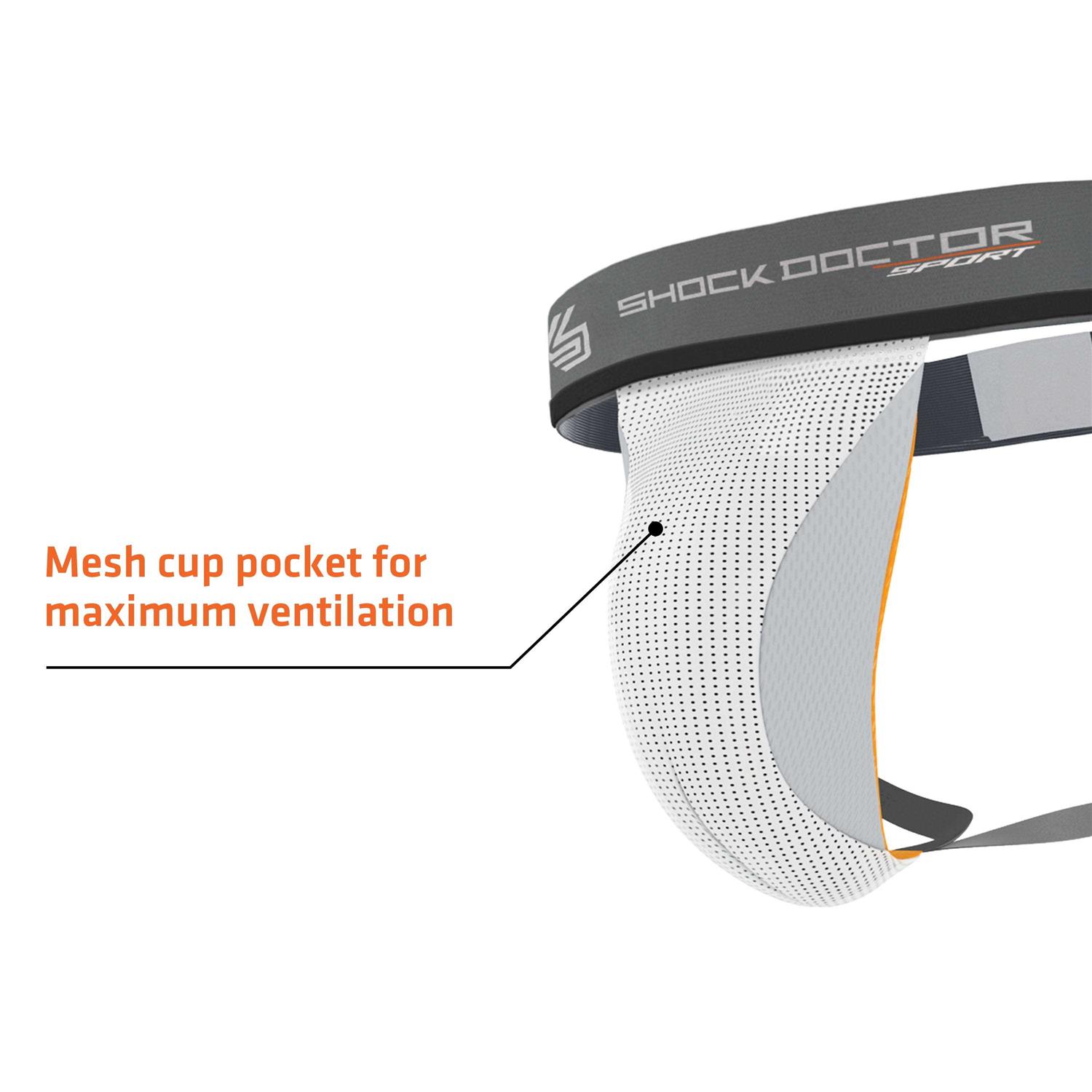 The Shock Doctor Sport Supporter With Cup Pocket delivers all the support you need for any athletic activity. Made of breathable four-way stretch fabric, this athletic brief has a secure, comfortable fit and features a mesh cup pocket for maximum ventilation (cup not included). Ideal for contact sports that require a cup or any activity where impact occurs, including baseball, football, ice hockey, lacrosse, mixed martial arts, wrestling or other fight activities.