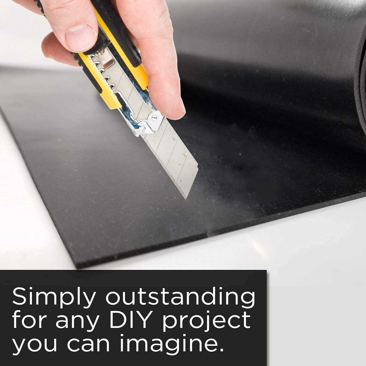 High Quality Material :This Rubber Flooring Roll is made of Solid Rubber ,NOT sponge or foam . The Flooring Mat is black in color and smooth on both sides. Could be used at a wide range of temperatures and keep Flexible ,famous for long service life . Cut Down On Noise : Prevent unwanted vibration in your stereo, on furniture and washing and drying machines. Rubber is the best material in the entire world for absorbing impact , vibration and anti-slip. Superior Protection : Ruber material has a high degree of chemical stabilityis , wihich is electrical insulation and Anti-Slip , ideal for flooring , provides you with Superior Protection . Easy to cut :The rubber floor mats can easily be cut and trimmed with scissors to any size you need . You can easily DIY your floor mat according to your floor . Wide Application :Cushioning ,anti-vibration, anti-slip , resistant to abrasion and oils and easy to clean , perfect for garage, warehouse, basement, gym, workshop ,car mat etc.