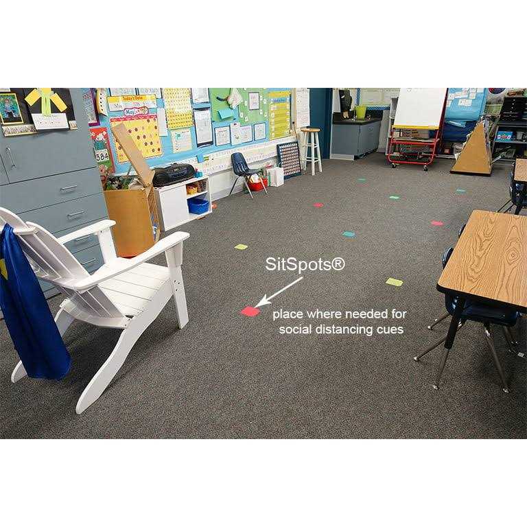 The SitSpots 30 Bright Circle Pack consists of the following: 5 circles every in Bright Blue, Bright Green, Bright Orange, Purple, Bright Red, and Bright Yellow. These original SitSpots are Velcro shapes that adhere to glued down carpeting, and are made from an industrial strength Velcro that outperforms all other types of Velcro for durability and longevity. They work on some but not all area rugs. See the directions for checking your area rug for SitSpots compatibility below. SitSpots Will also be safely vacuumed over, are washable and reusable, and can be utilized for classroom management and interactive floor games. SitSpots, are the very best size for your classroom, 4″ in diameter! This size used to be selected based on performance testing in the classrooms of young children: The 4-inch size fit completely underneath seated student bottoms and prevented most students from pulling at, fraying, and ruining the Take a seat Spots The larger sized (5 and 6 inch) Take a seat Spots had a tendency to tear when removed from the carpeting. The larger sized Take a seat Spots deteriorated prematurely from students pulling at and fraying the edges. Visual cues were not compromised the usage of the 4 inch sized Take a seat Spots. Check your rug for SitSpots compatibility by the usage of a 3 to 5 inch piece of Velcro. Separate both sides of the Velcro and use the rough side only. Place the rough side facing down onto the rug pressing it down firmly. Slowly pull the Velcro upwards toward you and off the rug. The rug is SitSpots compatible if the Velcro needed to be peeled/pulled off the rug and an audible sound of Velcro being pulled apart used to be heard right through the removal. The rug isn’t Take a seat Spots compatible if the Velcro didn’t grab onto the rug, it lifted easily and no audible sound of Velcro being pulled apart used to be heard. SitSpots are 4 inch Velcro shapes that firmly attach to glued down carpeting without the usage of adhesives Researched and developed by a kindergarten teacher and tested in the classrooms of young students (ages 3 – 6 years) The high-grade, industrial strength fabric used in this product outperformed all others for durability and longevity Immediately reduces the frequency of verbal reminders and provides visual cues to students instead Will also be safely vacuumed over without shifting, lifting, or peeling and custodians love them