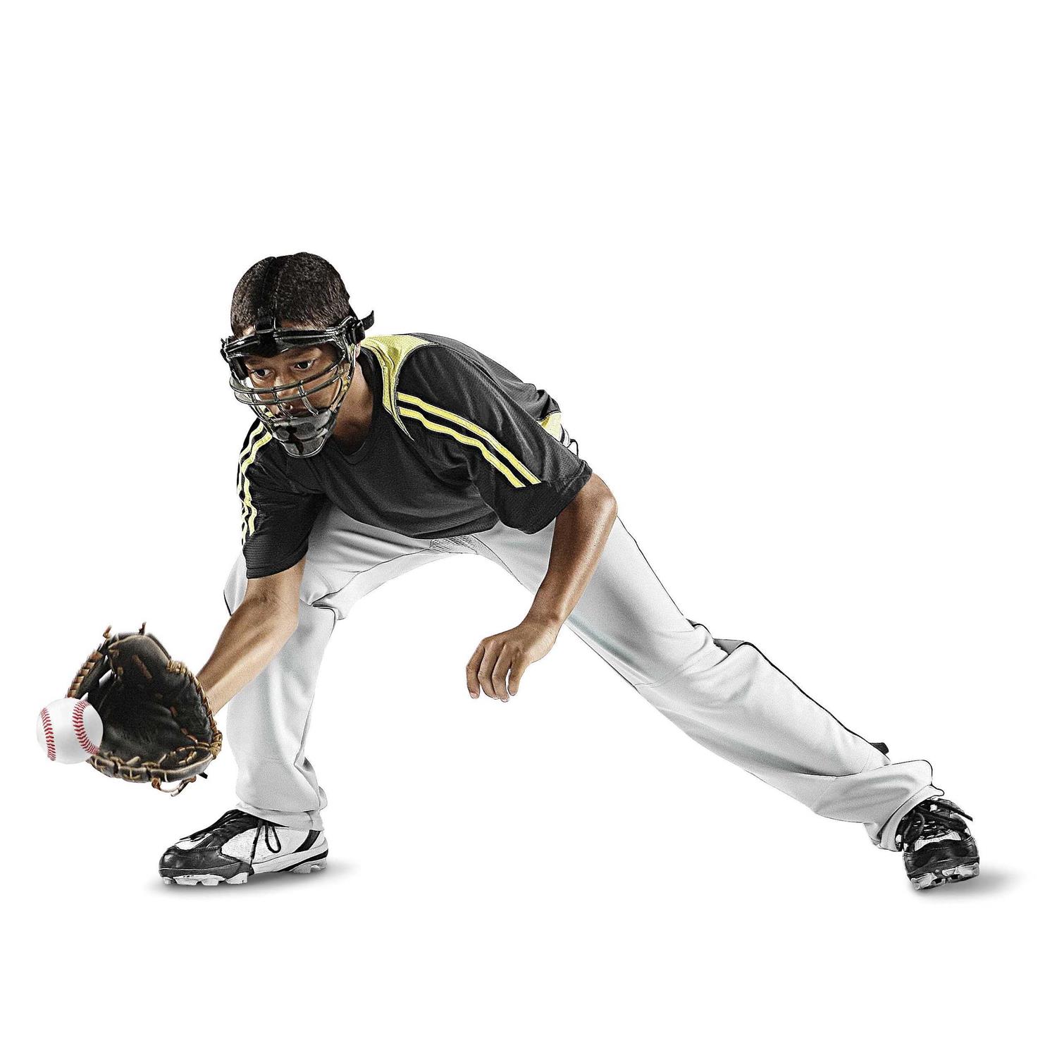 Play to your maximum potential with this Youth SKLZ Field Shield. This comfortable fielding face mask gives you facial and dental protection. You can rest assured that the temple region, eyes, brow and the orbital bones are kept safe with this fielding mask. The chin pad and head straps both adjust for a snug fit and offer a 3/4 inch thick foam for additional safety. This protective face mask comes with a ponytail strap, and it is ventilated to keep you cool while playing on the field. It is made with shatterproof construction and features ultra-lightweight polycarbonate material. For added strength, this Youth SKLZ Field Shield contains a double center bar. The mask is available in both adult and youth sizes.