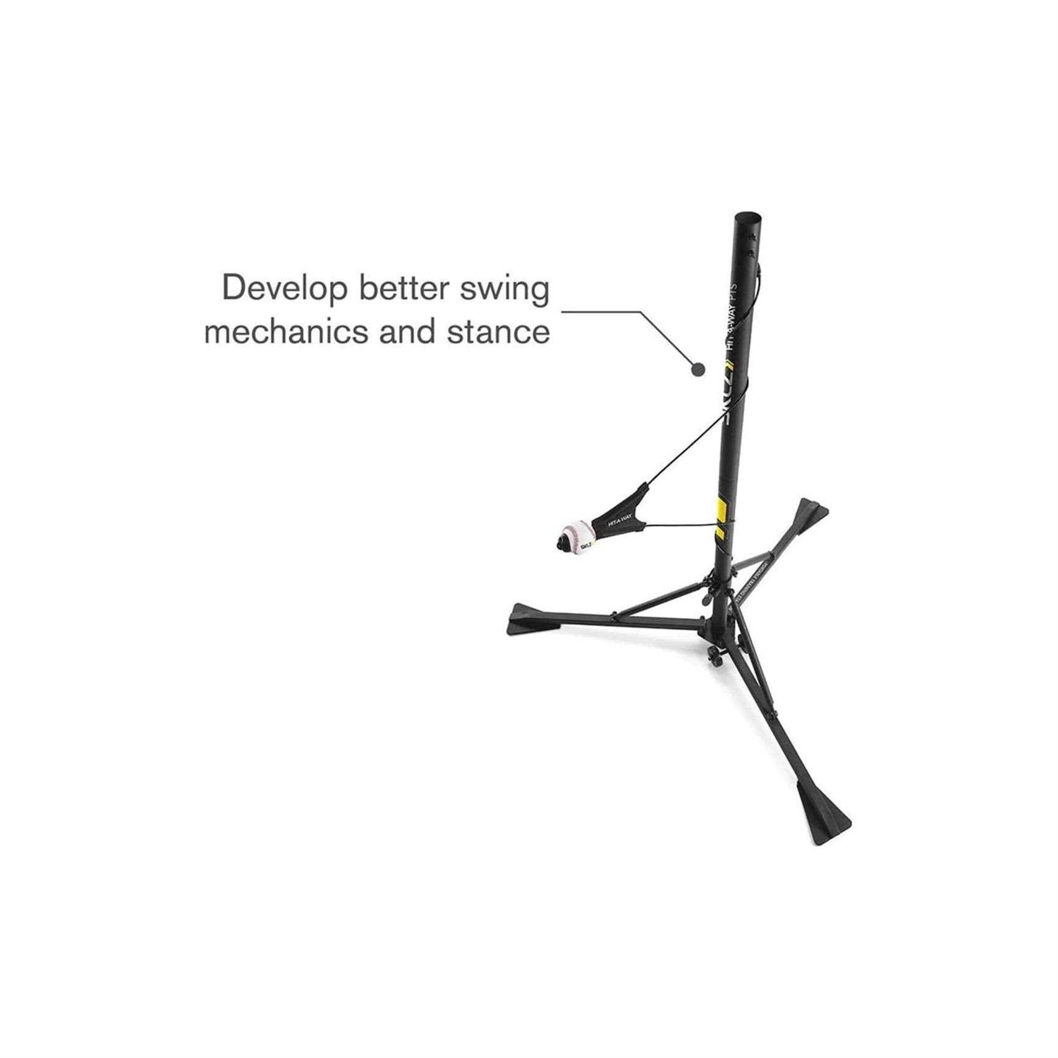 The Hit-A-Way Portable Training Station is the #1 baseball batting trainer of all time. Featuring a sturdy pole and twist-back design to maximize a players power swing speed and mechanics the trainer allows for up to 500 swings per hour without ever chasing a ball. The Hit-A-Way now includes a shorter cord for better rotation and the twist-back design simulates real pitches. Portable and compact the fold-up design sets up and collapses easily making it ideal for stimulated pitching at-home or during pre-game warmups. Solidly built for frequent use the 35 lb. Trainer is a must-have for all levels to improve batting technique.