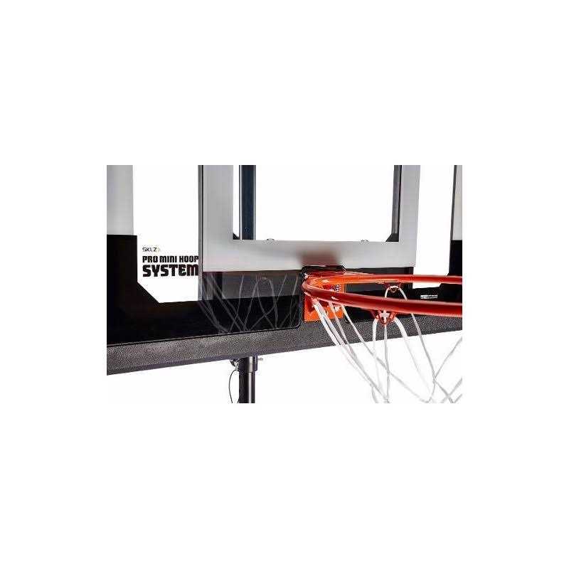 The SKLZ Pro Mini Basketball Hoop System is perfect for a little 1-on-1, or to practice your three-pointers. This system will grow with your athlete due to the adjustable pole height, from 3.5 ft. to 7 ft. With a shatterproof backboard, and ultra durable, 8-loop net, it can handle intense shots from powerful players and the rough and tumble play of kids. Set this up for some poolside fun, or for your strong athletes for a more competitive game. This mini basketball system is perfect for indoor or outdoor use and will keep you active all year round. As your athlete grows, your basketball system can too. This professional grade mini basketball system with a breakaway rim allows for layups, bank shots, and more. You can be sure that your fun will last, with easy and quick set up. The SKLZ Pro Mini Basketball Hoop System includes a 33” x 23” clear polycarbonate backboard, an adjustable steel pole, and a weighted mobile base on wheels. It includes a 7” Mini rubber basketball and a 14.5” breakaway rim for ultimate fun. Set up and start shooting today.