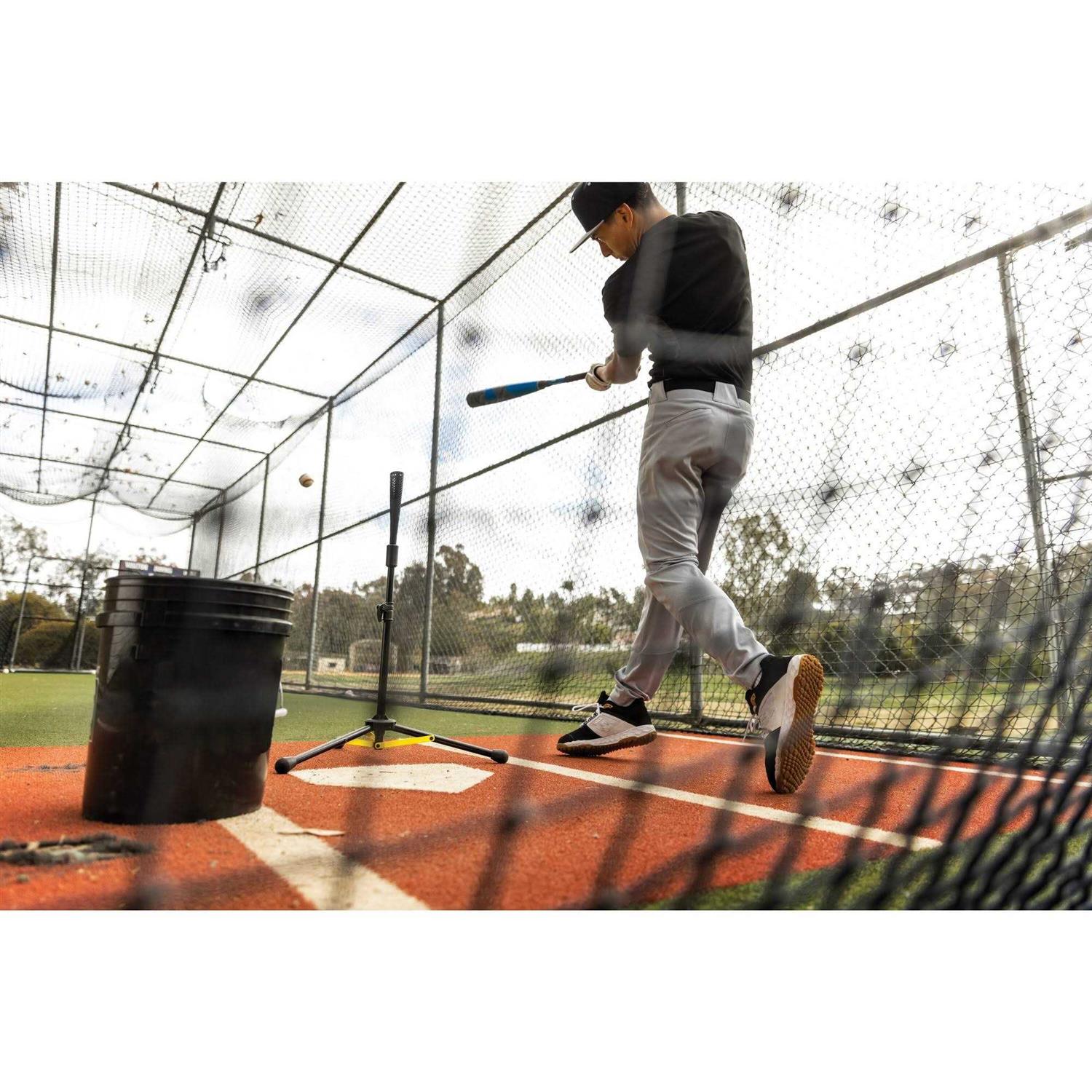 A high-level travel tee that helps batters train anywhere. The SKLZ Travel Tee Elite was designed to help hitters maximize the reps needed to perform better at-bat. The high energy return material of the tee top flexes on impact through each batter’s swing for more realistic ball contact without interfering with the swing. The tee top is durable enough to withstand hard hits and many seasons of baseball or softball training. The tee’s sturdy and collapsible design makes it easy to assemble, transport, and store on and off the field, perfect for any kind of training day. Its easily adjustable height from 27 in. to 49 in. is ideal for different pitch locations and each batter’s preferred height. The Travel Tee Elite works with almost any baseball, softball, or training ball making it the perfect tee for batting practice. The ultra-portable design of the SKLZ Travel Tee Elite makes it ideal to practice on the field or in the backyard.