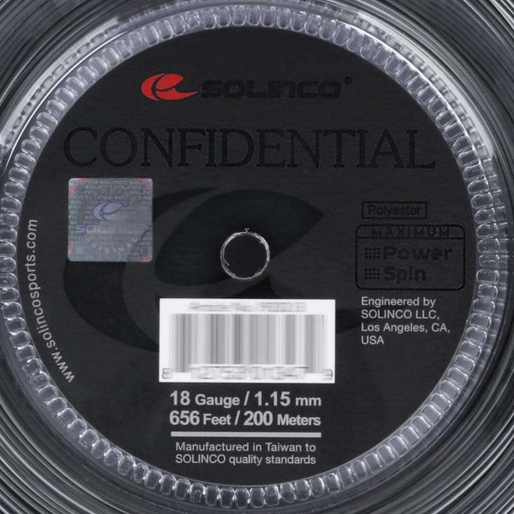 Increase spin on every swing with the Solinco Confidential 18 1.15. 656 Reel These co-polyester strings are perfect for intermediate and advanced tennis players looking to add more power and spin to their game. An innovative chemical composition combines with a high-powered polyester monofilament to amplify power and bite while also improving tension maintenance. With the Solinco Confidential 18 1.15 656 Reel strings, youll be generating intense spin and maximum power in no time.