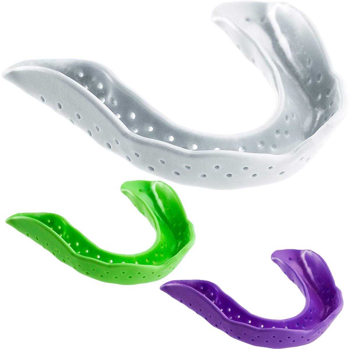 Pre-formed for fast fitting and custom comfort, this youth night guard was developed for growing jaws and teeth. Its designed to distribute the pressure caused by night grinding, relieve pain, and protect kids’ teeth at night. Equipped with Diffusix Technology, its shape and perforations absorb impact and withstand extreme nighttime teeth grinding and teeth clenching, providing relief from headaches, damaged teeth, jaw pain, and bruxism caused by TMJ. It promotes airflow, so you can breathe and drink while wearing.