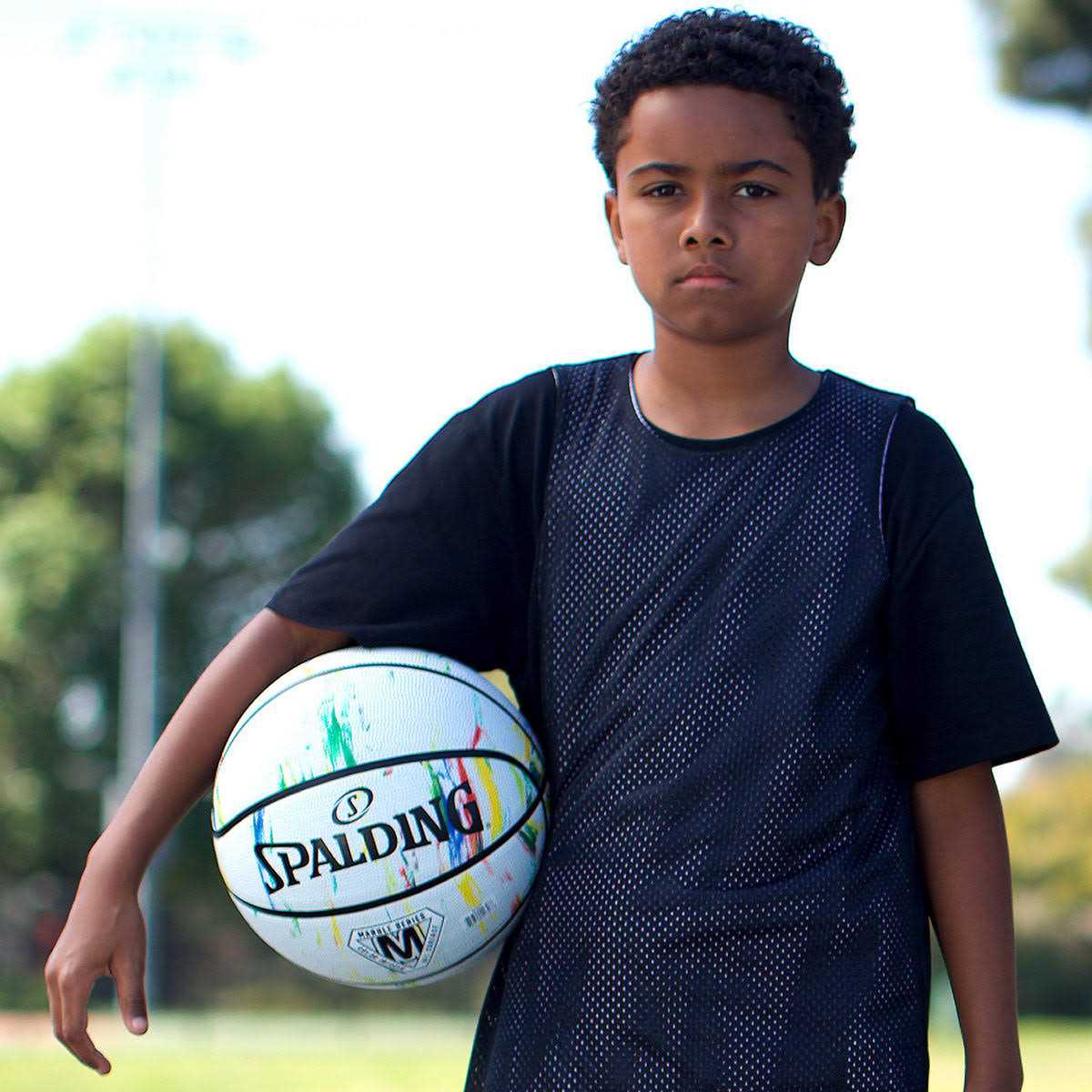 - Allover Spalding color-infused graphics