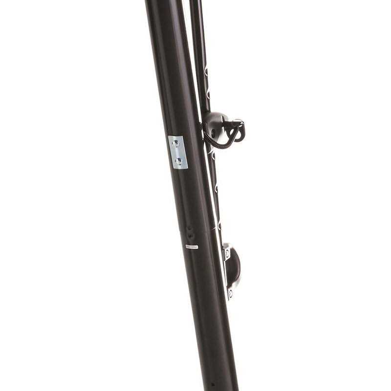 Take a game to new heights with the Spalding NBA basketball hoop. It’s built to withstand endless games of twenty-one in the driveway or backyard. The hoop system has a durable polycarbonate backboard and comes with arena-style padding and a steel breakaway rim. This portable angled basketball hoop can be adjusted from a height of 7.5′ to the regulation 10′ using the exacta height lift system, which is built so every age of player can work on their game. The system gets its stability from a 34-gal base that can be filled with water or sand and is equipped with two wheels for taking the game where you go. The angled pole design allows for more play under the basket, so kids can run plays just like the pros. This basketball hoop with a backboard is specially designed for outdoor residential play.