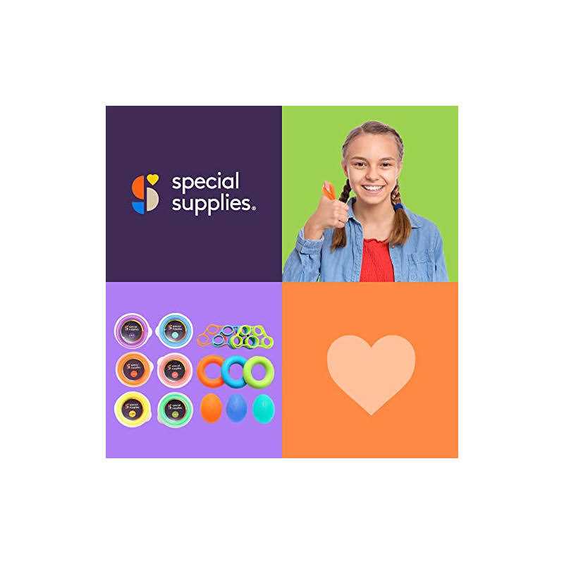 Help children improve their hand-eye coordination, recovery faster after a hand or finger injury, or increase finger dexterity in seniors with low hand mobility with an interactive Special Supplies therapy putty and hand exercise bundle. Whether you’re struggling with low hand mobility due to age or injury, or you simply need a hands-on outlet to keep children focused and relaxed, nothing beats the versatility and support found in this Special Supplies Hand Therapy Bundle. Complete with 6 colorful therapy putties and a multitude of specially designed finger and hand stretchers and strengtheners, it’s the ultimate choice for keeping hands strong and active. From the fun, interactive putty that’s perfect for squishing, pulling, twisting, and squeezing to the stretchy ring, circle, and egg-shaped silicone dexterity accessories, you’re sure to find the right tools to help improve strength, recover faster after injuries, or simply reduce stress and anxiety when you’re at home, work, or even in the classroom. Get the 15-pc. set today by clicking Add to Cart above now.