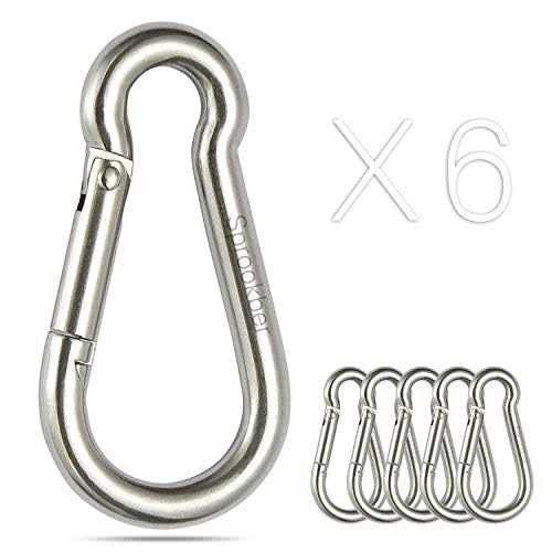 Sprookber Stainless Steel Spring Snap Hook Carabiner – 304 Stainless Steel Clips, Set of 6
