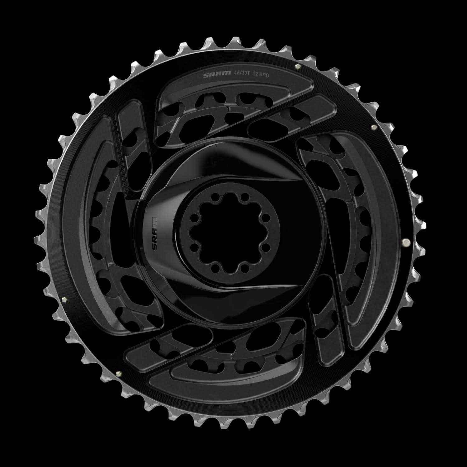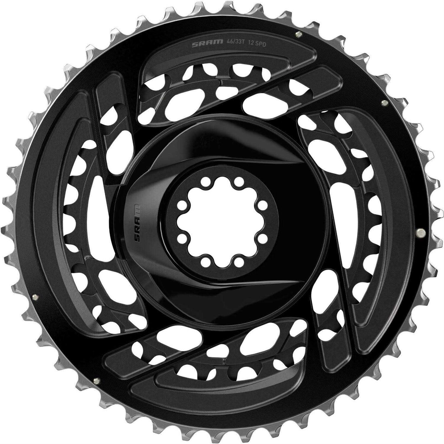 SRAM Force AXS 2x Chainrings The SRAM Force AXS 2x Chainrings feature a unique one-piece construction where the rings and spider are bonded together. This makes for a stiffer and lighter chainring. In addition, it makes shifting faster, smoother and more accurate. The SRAM Force AXS Chainrings also use a new tooth profile which makes it more durable for improved wear resistance. The chainrings are available in 46/33, 48/35 and 50/37 sizes. T orx T20 bolts included.