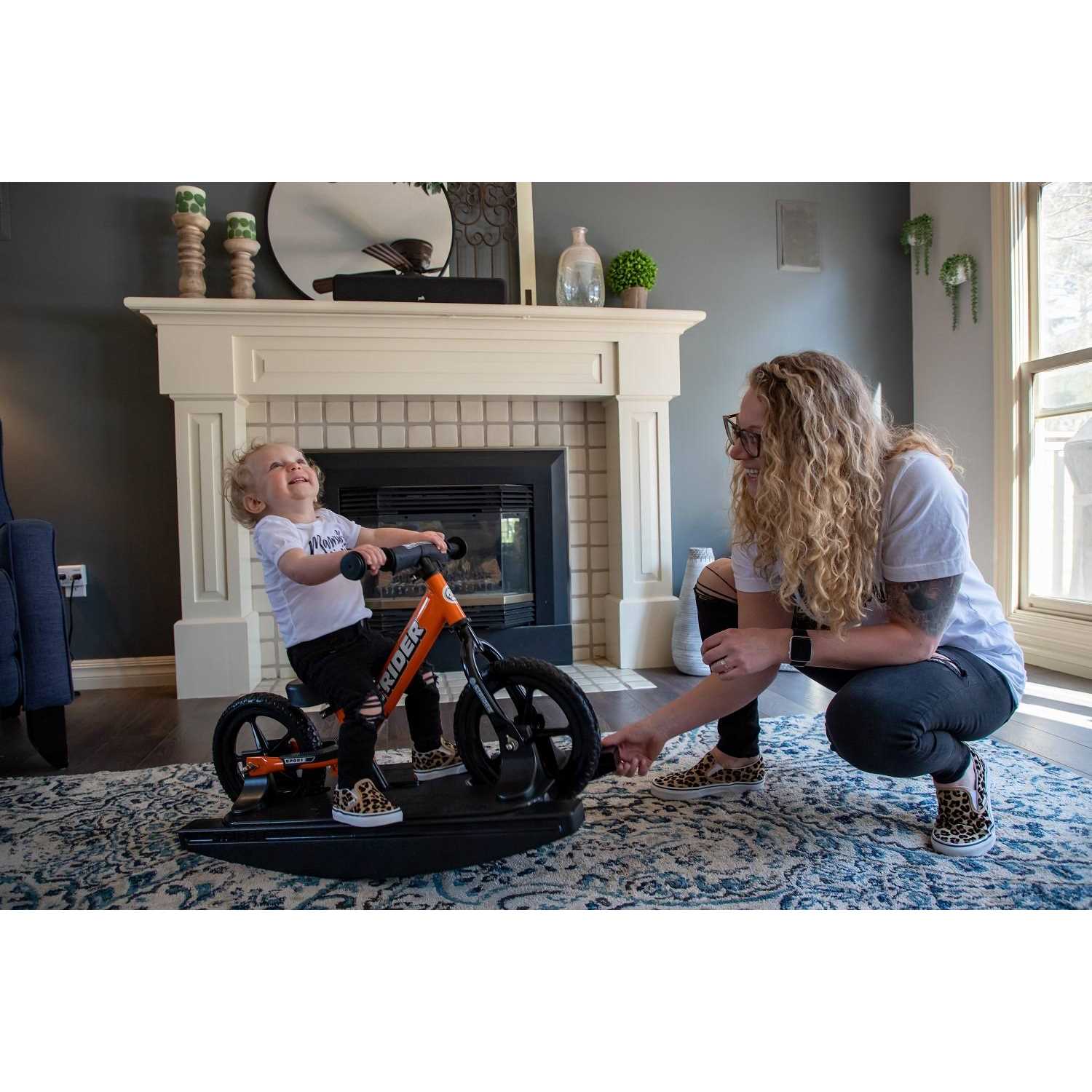 It’s never too early to spark a child’s love of riding, and the Strider 2-in-1 Rocking Bike does just that. Babies can bond with their very first bike as early as they can crawl, and as they grow, the bike will grow with them. The Rocking Base holds the 12 Sport securely and drops stand-over height, so even the shortest of chubby baby legs can put their feet down and learn to rock. To them, it’s just good old-fashioned fun, but to you, it’s helping your baby reach developmental milestones like balance, core stability, spatial awareness, and cognitive ability (that can be your little secret). The Strider 2-in-1 Rocking Bike is two toys in one. When your little one has mastered rocking and is ready to roll out, simply detach the bike. The 12 Sport is the perfect bike to take your child from baby steps to big strides, all without busting out a toolkit (no-tool adjustable seat and handlebar AND never-flat tires). The Strider 12 Sport 2-in-1 Rocking Bike fits children with an inseam of 22-51 cm (8.75in-20 in.). With Strider Bikes learning to ride is child’s play. Babies everywhere are clapping their chubby little hands over the fact that they too can now ride – or play – on a bike. The Strider 2-in-1 Rocking Bike aids kiddos in reaching development milestones so they learn to ride early (without training wheels!). Now, if only potty training were that easy. The Strider 2-in-1 Rocking Bike is two toys in one. When your little one has mastered rocking and is ready to roll out, simply detach the bike. The 12 Sport is the perfect bike to take your child from baby steps to big strides, all without busting out a toolkit (no-tool adjustable seat and handlebar AND never-flat tires).