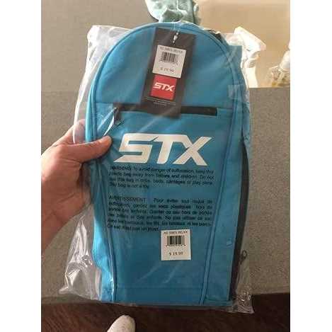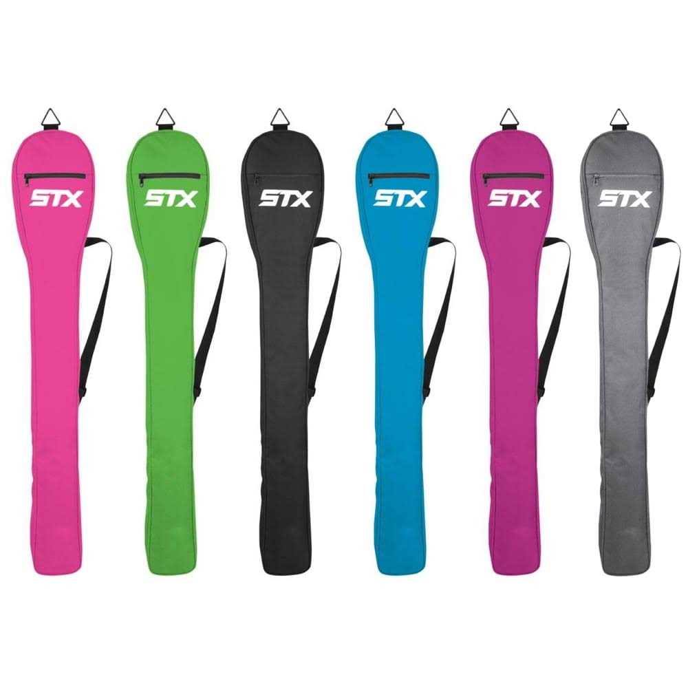 The STX Essential Lacrosse Stick Bag is made from durable nylon with a shoulder strap to make carrying your sticks easy. It fits up to 3 sticks. Key Features Durable nylon stick bag holds up to three sticks Large top opening External zipper pocket Strap designed for across the chest or over the shoulder carrying position.