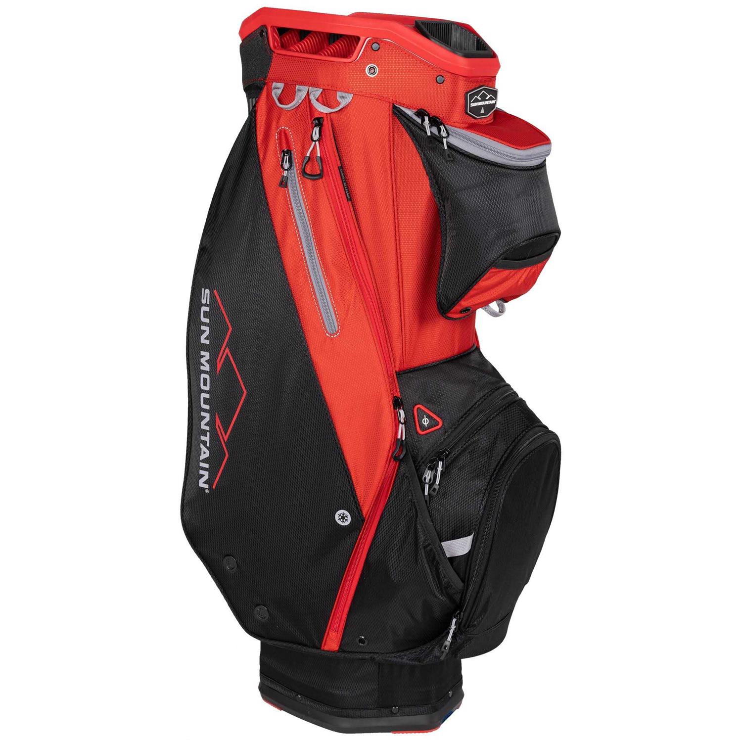 The Sync is designed specifically for use on push carts. Sun Mountain started with a top and bottom built to nest in the upper and lower bag wraps of their carts. Then, Sun Mountain molded the bottom so it fits over the lower bag rest of Speed Cart V1R, Pathfinder PX3 and PX4 to limit side-to-side bag motion. In addition, all pockets are forward-facing and accessible when the bag is on a cart. Finally, there is a cart strap pass-through so the Sync can be strapped to the cart without hindering pocket usage.