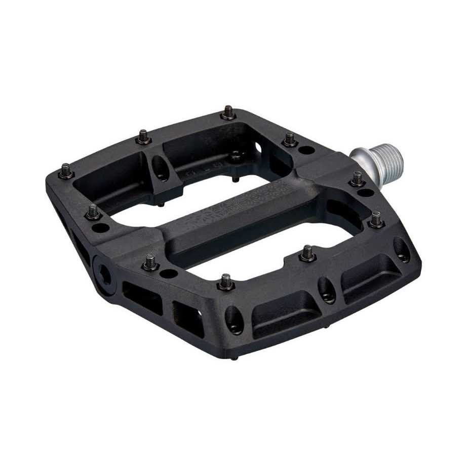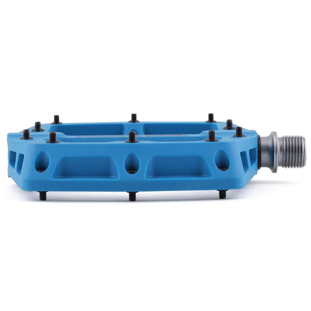 The Supacaz Smash DH Pedals are designed tough to take on the rowdiest of riding by being made with a reinforced thermopoly composite material. A chromoly spindle further adds durability, making these pedals nearly bombproof. The Smash Pedals have ten replaceable pins per side and use self-lubricating, sealed bushings to help keep these pedals working great for a long time to come. At only 180 grams per pedal, the Supacaz Smash DH pedals are a lightweight and value-packed platform pedal.