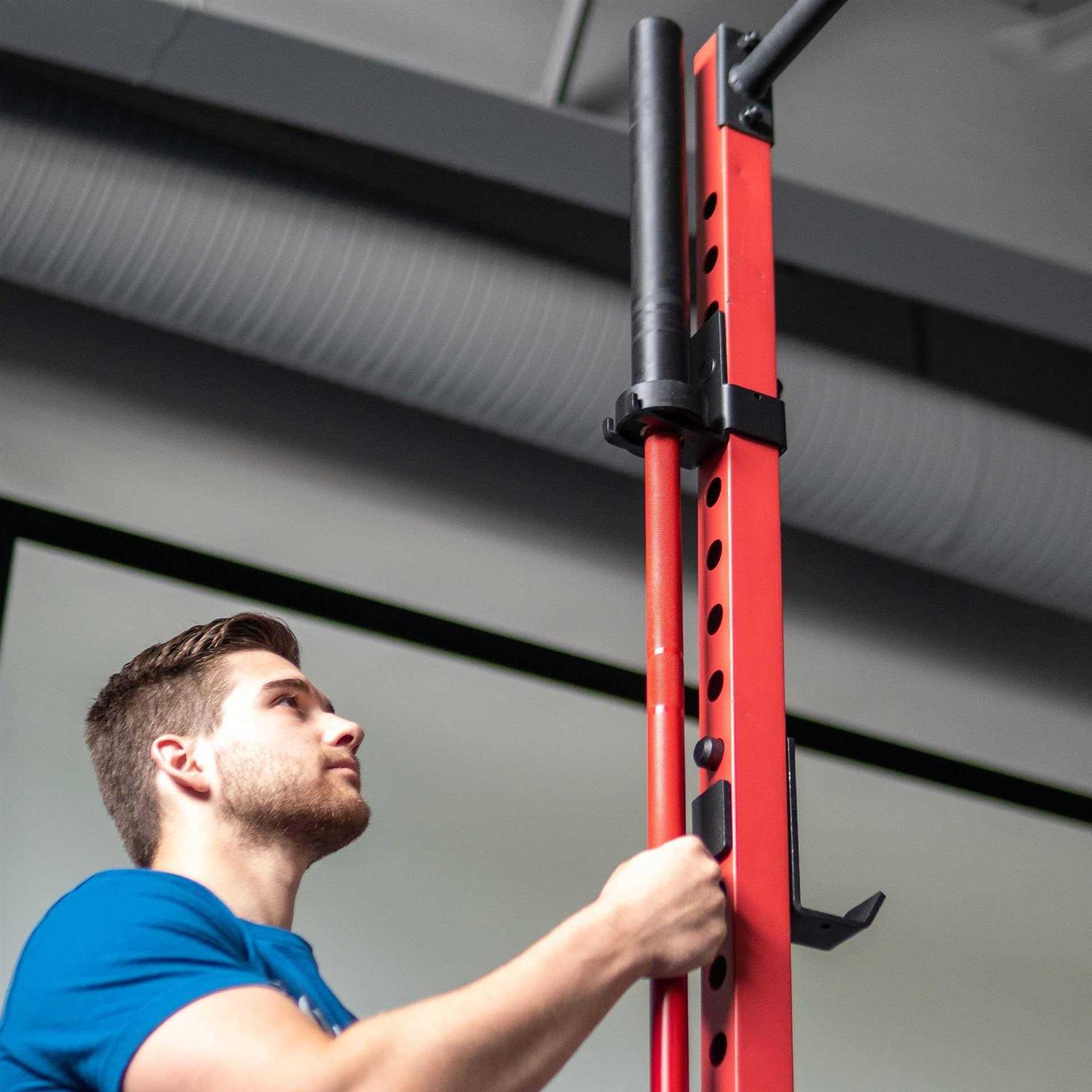 Storing your barbells provides 2 awesome benefits: your workout space becomes more organized, and it extends your barbells longevity by protecting them from damage. The Barbell Storage Attachment is black powder-coated steel and can hold a single barbell vertically. Each Rack has a simple slotted design that allows for barbells of all types to be hung for storage. This Barbell Holder is made to fit on 2×2 Racks with 1 inch openings. This Barbell Holder is intended for Racks with uprights that are 90 inch tall or more so the barbell can clear the ground and rack’s base. This Holder attaches to the back of your rack and will hold your barbell out of the way – but still in reach! – to make your Rack more efficient and functional.