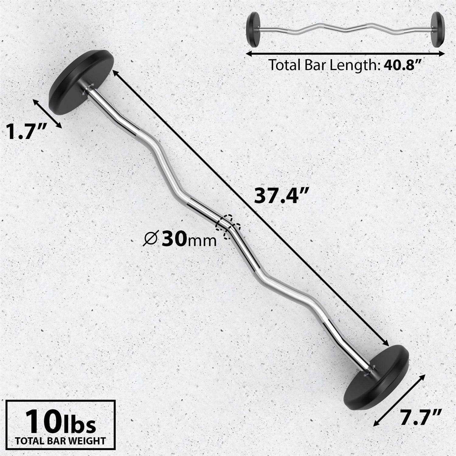 - FIXED CURLBARBELL SPECS: Brand Synergee Bar Weight 10-110lb Weight increments 10 LBs Diameter 30 mm Shaft Coating Chrome Sleeve Coating.