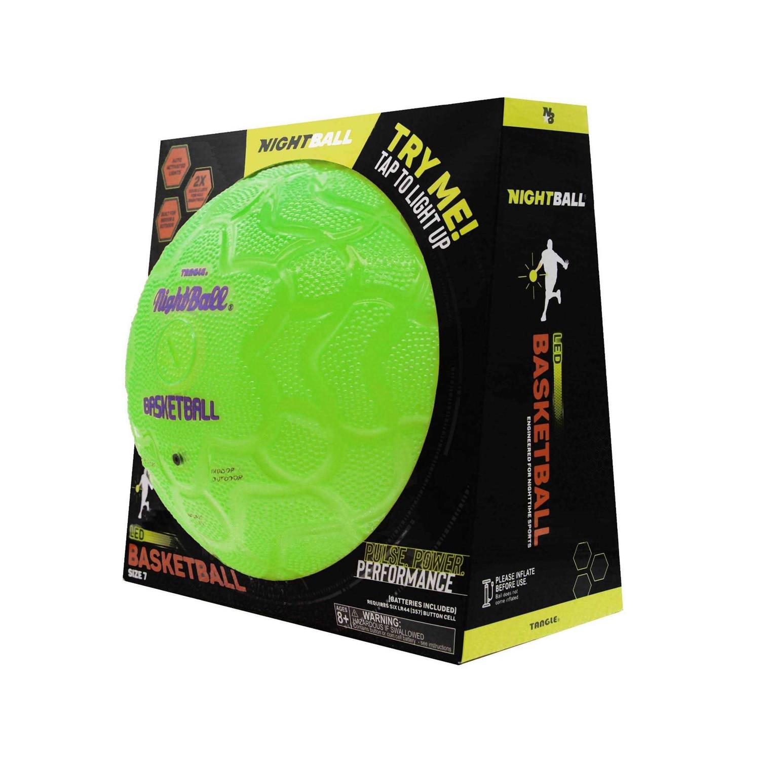 Tangle NightBall Basketball Green Are you ready for a basketball experience like no other? Tangle NightBall Basketball is the perfect basketball for those who want to up their game! Utilizing one of the most innovative LED technologies on the market, these unique balls stand out from the competition with their super bright motion-activated LEDs that are built directly into the ball. Not only will your shots look amazing in low light, but you can also enjoy up to 100K LED’s flashing per hour to truly make a statement. Plus, you never have to worry about running out of juice! There are replaceable long-lasting batteries included in every ball! Ideal for kids and adults alike, the Tangle NightBall Basketball is the perfect gift for any basketball lover or consumer who is looking for a fun and unique product. Whether shooting a few hoops in the backyard with friends or an intense all-night tournament, our NightBall Basketball is sure to provide hours and hours of entertainment. And with its standard regulation size and bounce, you can be certain to have a safe and comfortable experience. So what are you waiting for? With Tangle NightBall Basketball, let’s get #LIT and light up those jump shots!