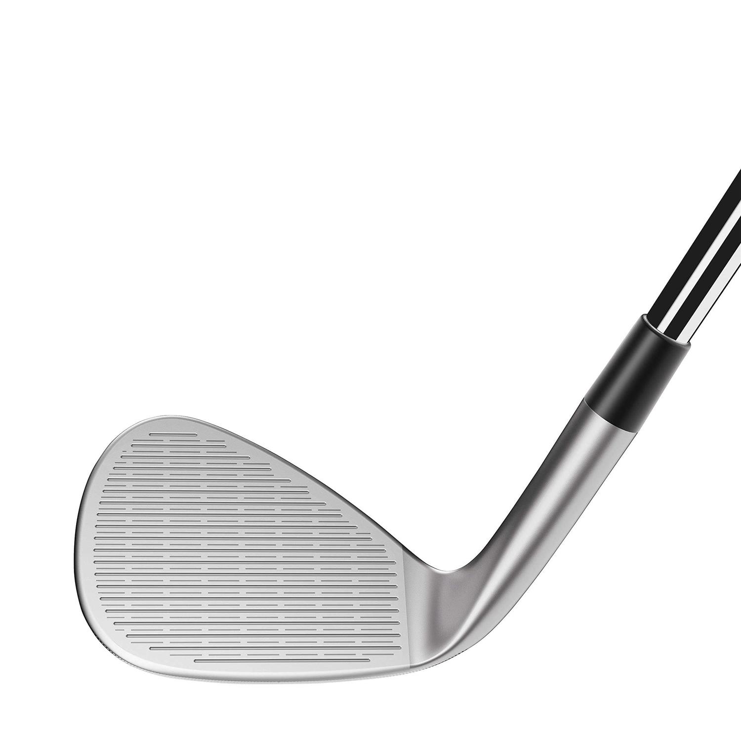 Introducing the new TaylorMade Hi-Toe 3 Wedges, designed for increased spin, precision and feel whether you’re taking full swings on your approach or playing finesse shots around the green. Made from a soft 8620 carbon steel, Milled Grind wedges ensure precision where it matters most. The milling process maximises consistency, crafting each sole for repeatable performance and turf interaction, obtaining tolerance levels difficult for a human to repeat. The Hi-Toe design is taller in the toe area (66mm) and is engineered to create better spin and launch results. Full length scoring lines with the mid-to-higher lofts improve spin around the green when the face is rotated open on shorter shots. The added weight pad in the toe area helps move the center of gravity closer to the middle of the face to optimise launch and spin while providing premium feel. Milled ribs positioned between the full grooves add texture to the face and are designed for increased spin and improved performance on partial shots around the green. The larger ZTP RAW Grooves feature radii further engineered for optimal spin in various conditions. Multiple sole options for fitting include standard, low, and high bounce. Each one is optimised for improved turf interaction and bounce separation for certain swing types and playing conditions. Fitted as standard with the TaylorMade KBS Hi-Rev 2.0 shaft and the Lamkin Crossline 360 grip.