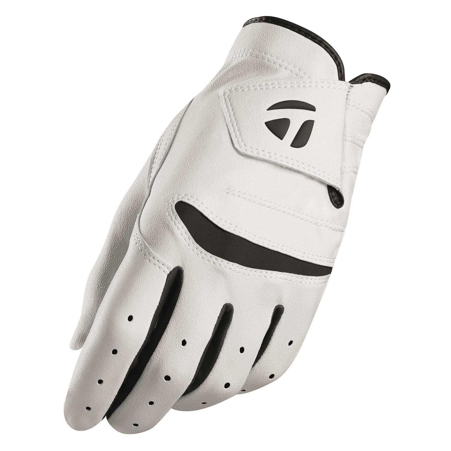 Gloves by TaylorMade. Details:This new addition to the family of TaylorMade gloves combines the best of both worlds – the versatile fit of a synthetic material and the feel of genuine leather. The top hand is made from a durable and breathable synthetic that maintains stretch for additional comfort, while the leather palm adds tackiness, durability and feel. The materials were also selected for their ability to resist cracking and fend off wear and tear.