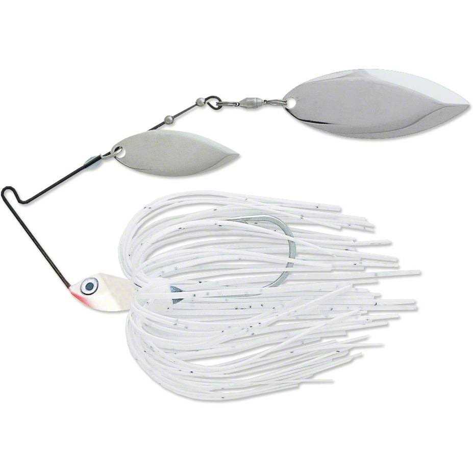 Enhanced with premium ball-bearing swivels, beveled Terminator blades and premium silicone changeable Quickskirts, these lures have 30% more bend resistance than traditional stainless frames. Colorado and Willow spinner blades deliver 47% more vibration than other spinnerbaits. The head rips through vegetation and rolls over logs with its snag-resistant design. Premium VMC hook.