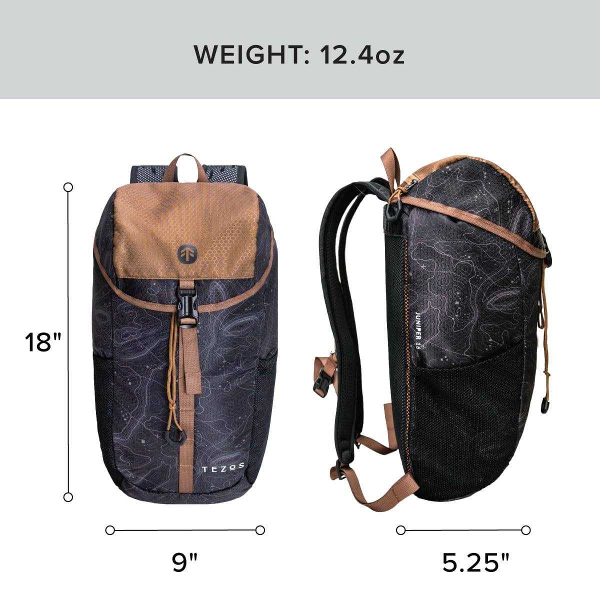 Tezos Juniper Daypack, Lightweight Hiking Backpack and Hydration Pack for Camping, Travel, Biking, and The Outdoors, 16 Liter