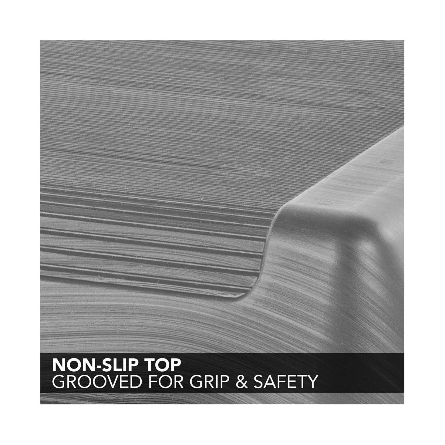 - Four nonskid feet on each riser and platform prevents sliding or scratching floors