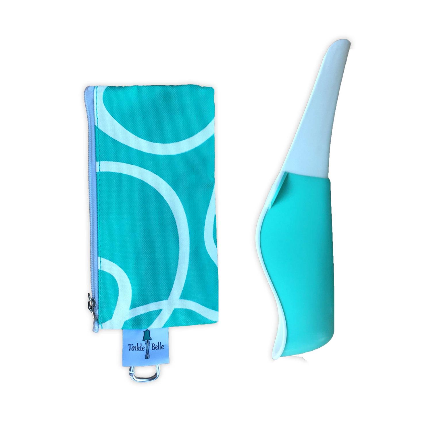 The Tinkle Belle Portable Female Urination Device| Women’s Urinal, Light Teal and White with Carry Case, Size: One Size