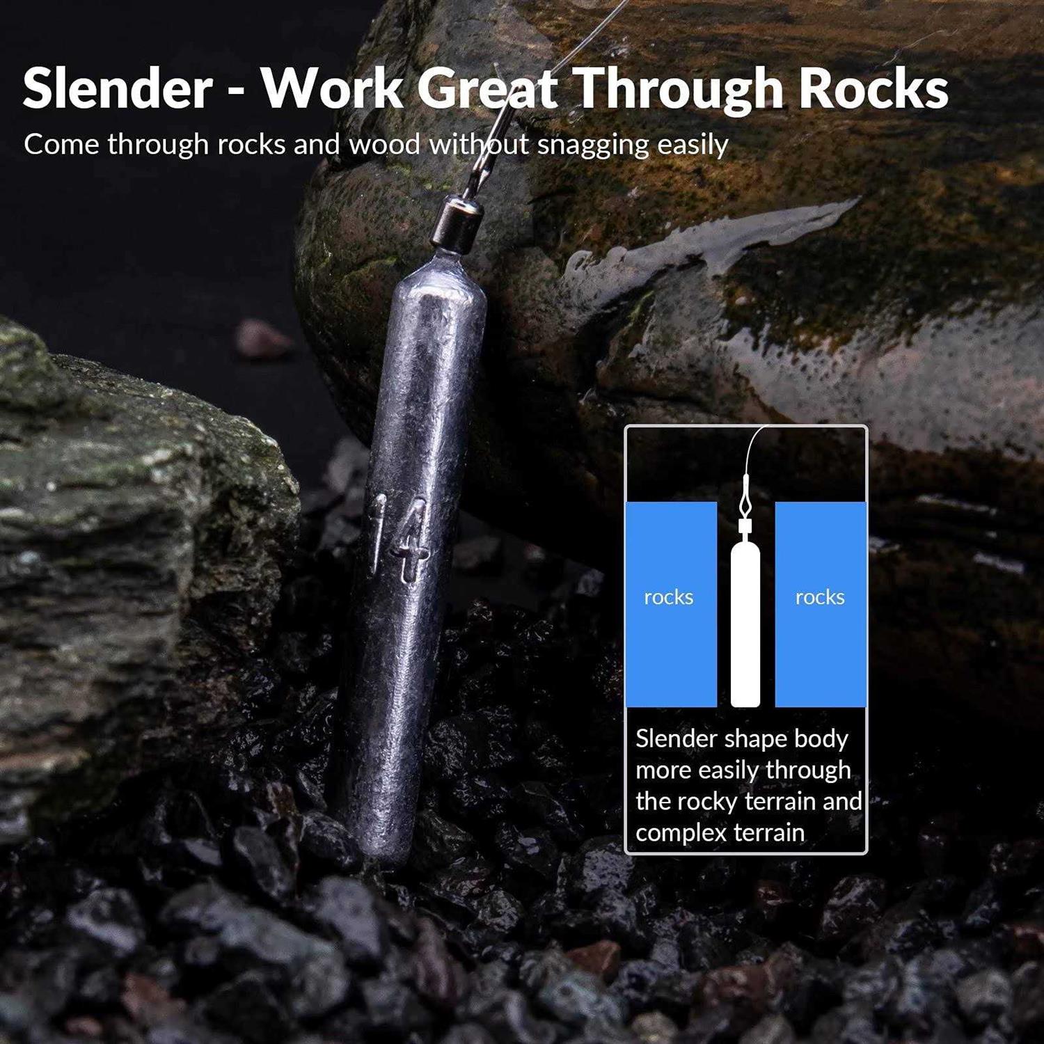 THKFISH Fishing Weights Fishing Sinker Drop Shot Weights Fishing Weights Kit Drop Shot Rig Fishing Weights A-Slender Shape 28pcs