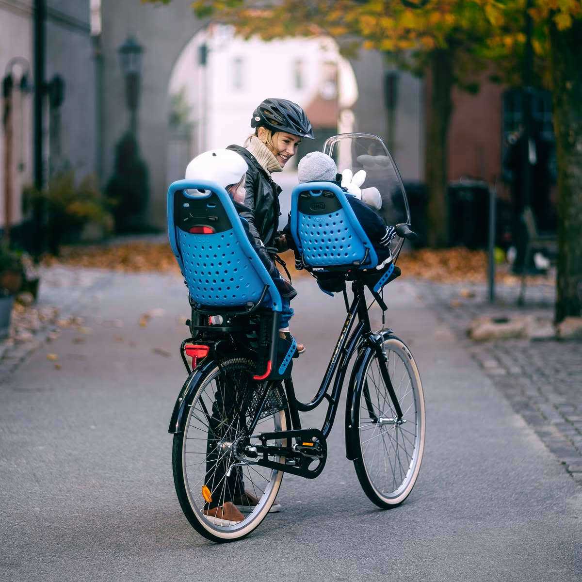 Fits rear bike racks with an EasyFit window or racks with Thule Yepp Maxi EasyFit Adapter (sold separately) Your child sits comfortably in the soft and shock-absorbing seat Maximum child comfort and a safe, custom fit thanks to the adjustable padded 5-point harness Your child is quickly and easily secured with the childproof safety buckle Added visibility thanks to built-in reflector and safety light attachment point Ensures a perfect fit as your child grows thanks to adjustable foot rests and foot strap Easy to clean and to keep dry due to the seat’s water-repellent materials Get outside and stay active as a family with the Thule Yepp Maxi child bike seat. Safe and easy to use, this lightweight rear-mounted kids bike seat allows you to ride as a family on daily commutes or longer biking adventures. The frame mounted seat easily attaches directly to the frame of your bike. Designed with an adjustable 5-point safety harness, a childproof buckle and a shock absorbing seat, your little co-pilot is will stay safe, secure and comfortable on any bike ride. This baby bike seat is built with water-repellent material that is easy to keep clean. Adjustable foot rests and straps grow with your child, making it the ideal bike carrier for kids from 9 months – 6 years (up to 40 lbs). Consult a pediatrician for children under 1 year old.