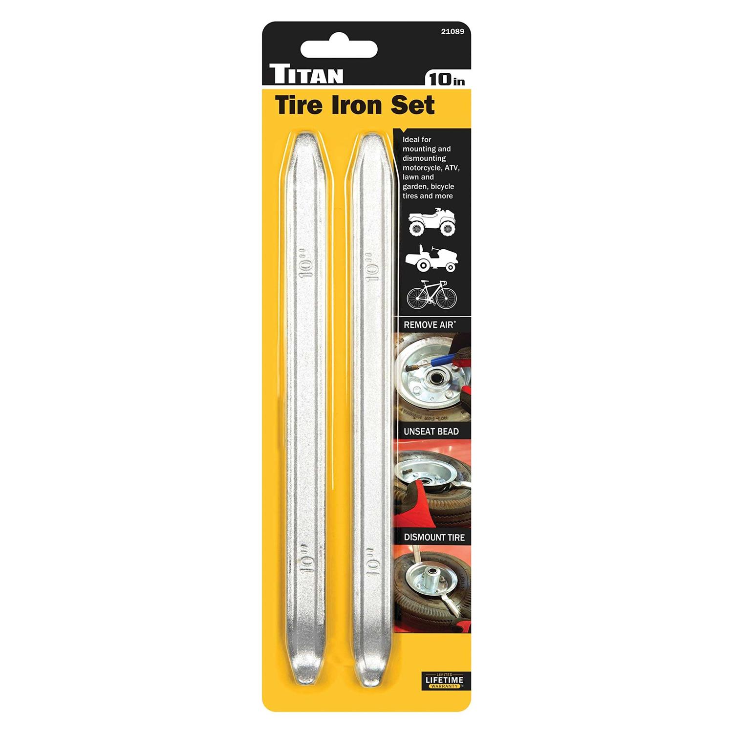 Titan Tools 21089 2pc 10In. They are designed and built to provide a lifetime of quality. Overall length: 10 inches Rounded edges help prevent pinching tubes and tire damage Ideal for mounting and dismounting motorcycle, ATV, lawn and garden, bicycle tires and more. Forged steel, zinc plated.