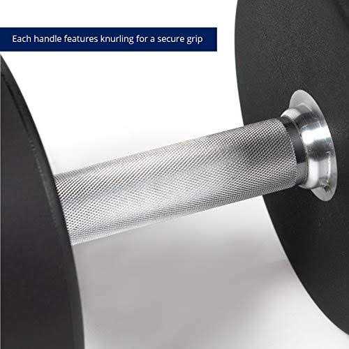 Take your workout to the next level with the premium Urethane Dumbbells from Titan Fitness . Each dumbbell features high quality urethane molded around a solid steel handle. – Urethane provides greater shock-resistance perfect for dropping repeatedly.
