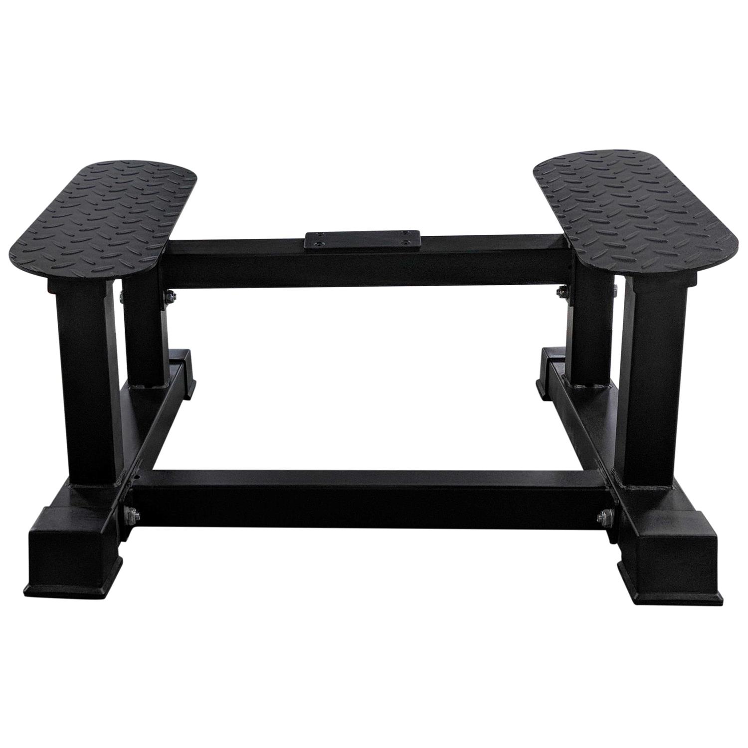 Diamond Plated Footplate. Angled diamond plated footplates provide comfort and stability during the exercise to focus on getting that deep stretch that this platform was built for! – This rowing platform allows you get an extended range of motion when doing bent over rows, straight legged deadlifts, and much more!