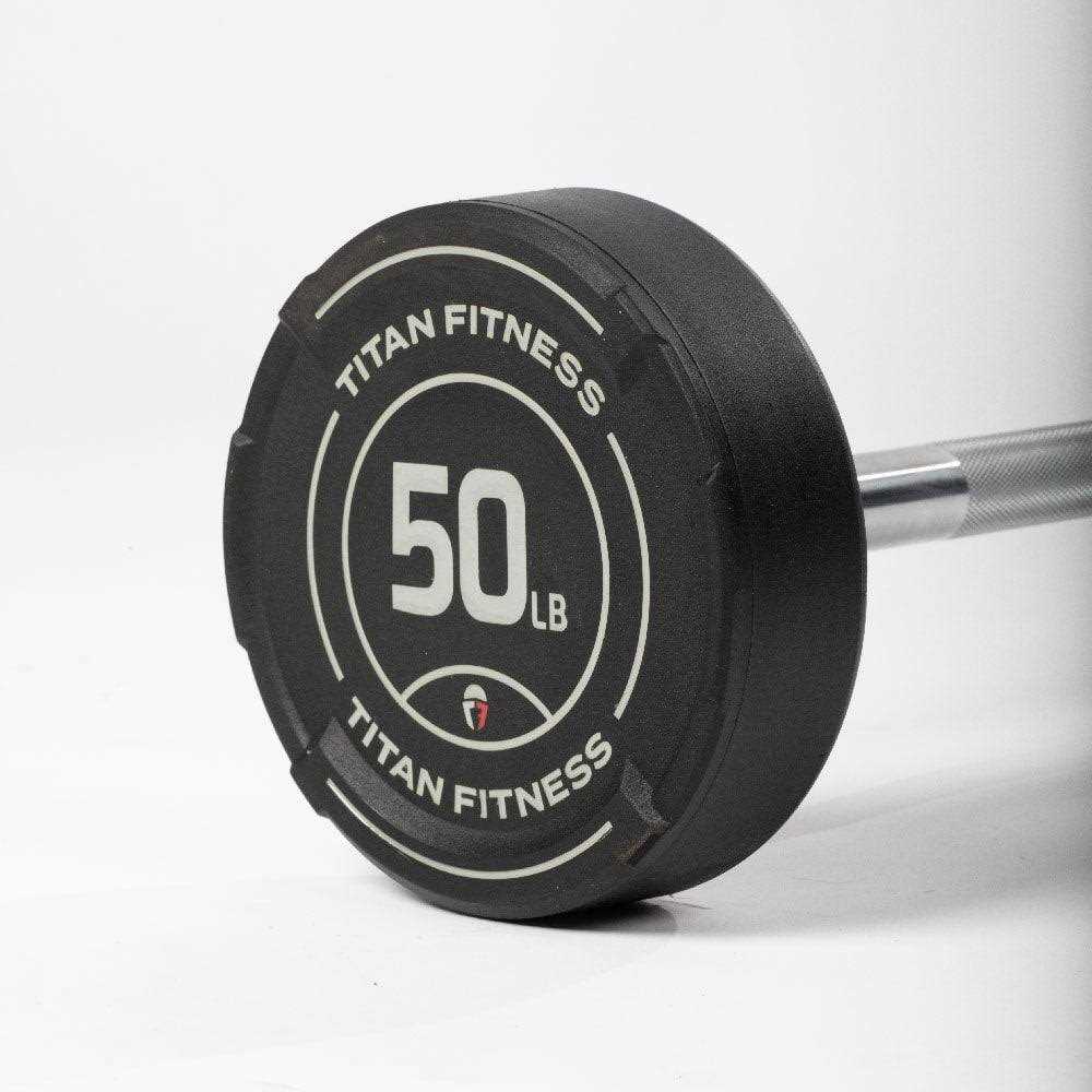 Titan Fitness 50 lb Rubber Straight Fixed Barbell, Pre-Loaded Weight Bar for Strength Training & Weightlifting, Size: Medium