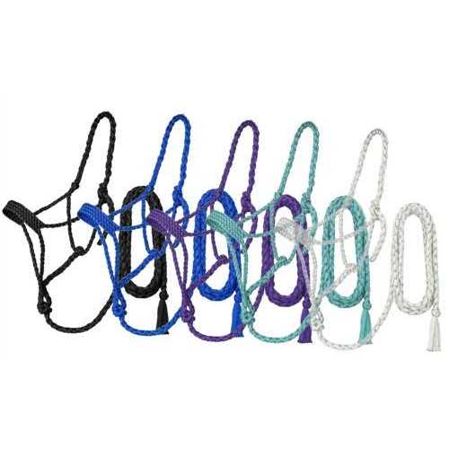 Tough 1 Halter and Lead Braided Mule Tape 50-9610 Tough 1Halter and LeadBraided Mule Tape50-9610 A lightweight yet durable rope halter great for everyday use. Soft plated wide nose and braided cheeks and crown. Complete with 10ft lead.