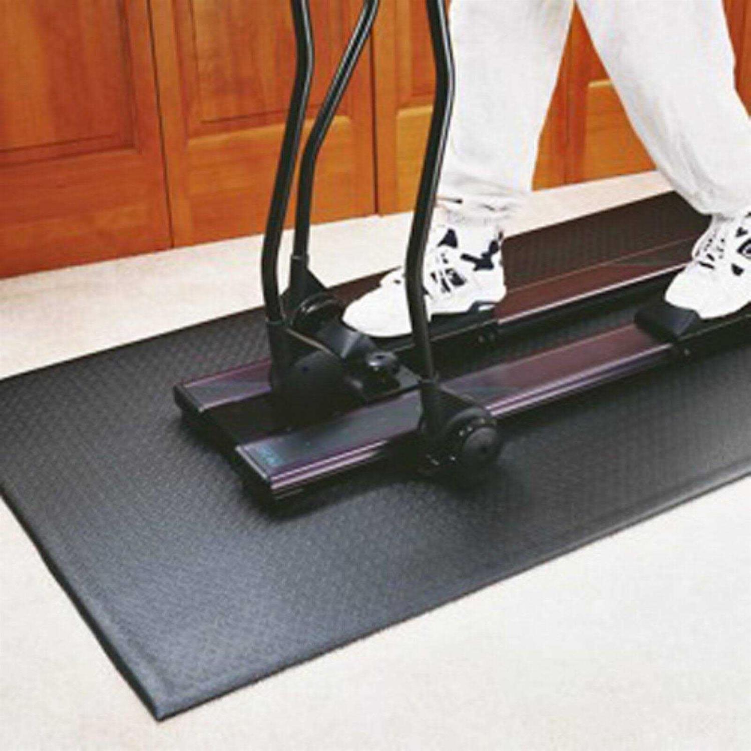 Super-tough, durable PVC material helps protect your floors and carpets from the damage effects of heavy exercise equipment and debris from mechanical parts. Prolongs the life of your equipment by helping prevent floor and carpet dust from entering belts and mechanical parts. Cleans easily with a damp cloth. Stepmant/Bikemat is perfect for steppers, exercise bikes, step-aerobics, or just stretching. Convenient size fits almost anywhere. Treadmat is perfect for treadmills, cross-country exercisers, or as a general aerobics mat. Longer mat sze fits any room in the house. 3-Feet x 6.5-Feet. Dampens vibration that cause wear and tear to equipment and muffles equipment noises so family and neighbors are not disturbed.