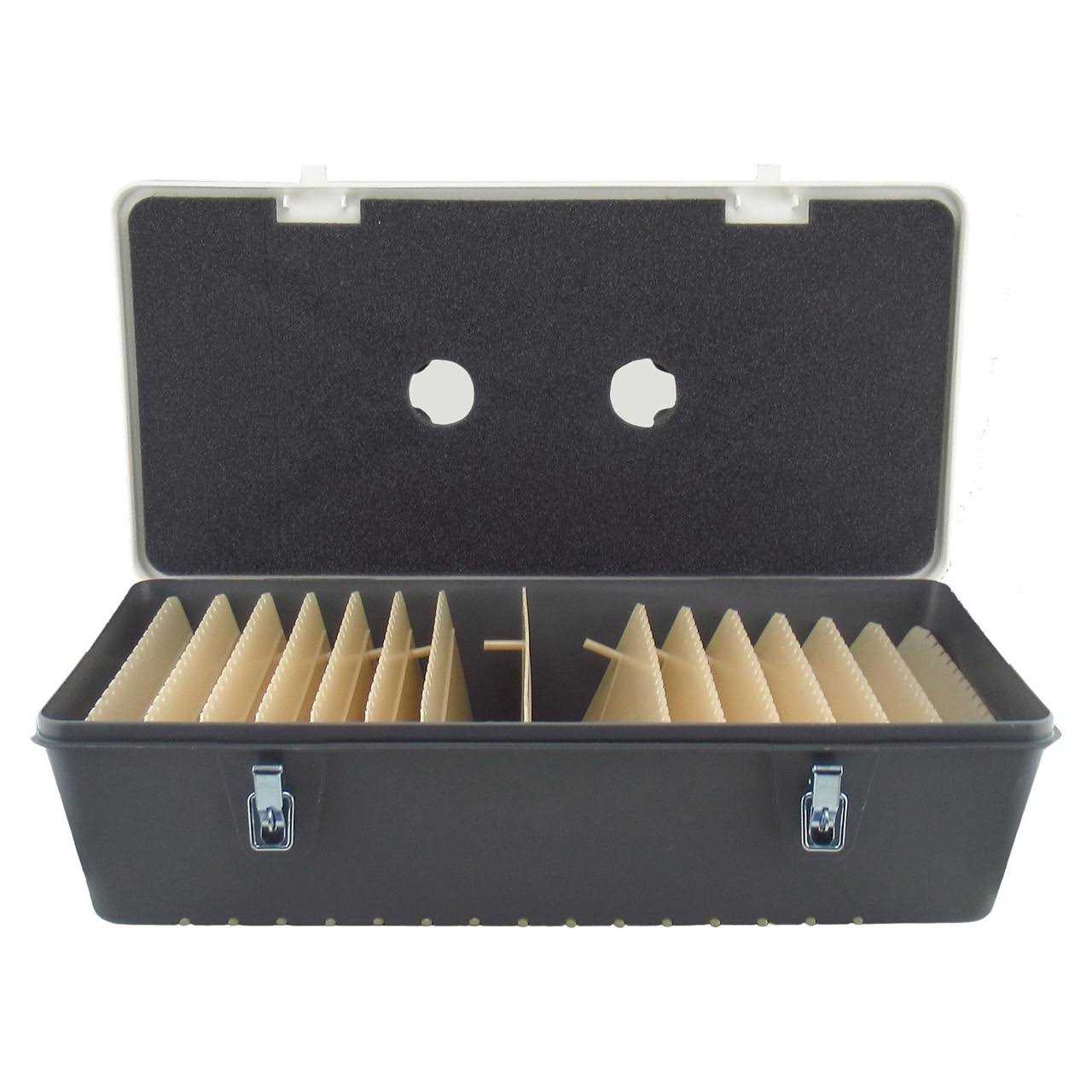The Special-Mate 8″ Tackle Box has 15 Hanging Dividers and holds 225 baits! It has dual, heavy-duty steel, lockable latches and a folding grab handle. The lid is foam padded to keep lures from rattling or bouncing off the dividers, and keeps things quiet. Even empty this sturdy box won’t flip over with the lid open! The color is two-tone, Gray/White and the dimensions of the box are 20″ x 10″ x 8″. The Special-Mate box has a unique, built-in feature allowing additional boxes to stack. The material used was selected for toughness & durability, ensuring years of service to it’s owner.