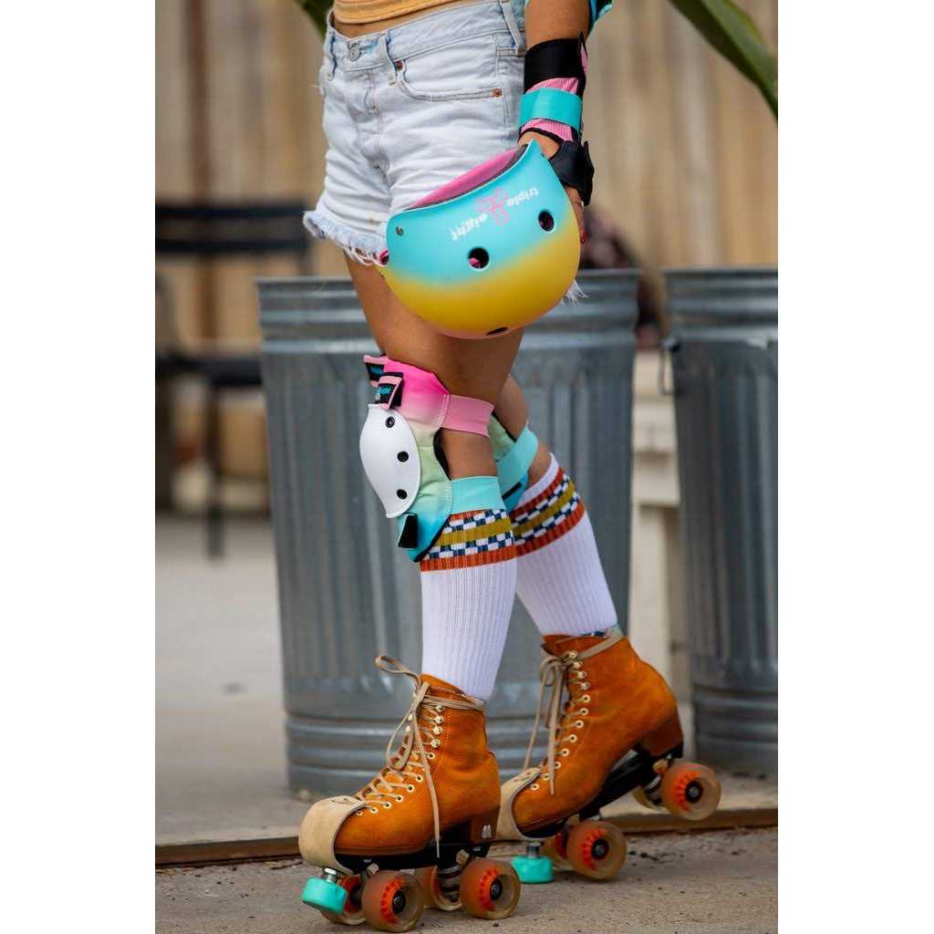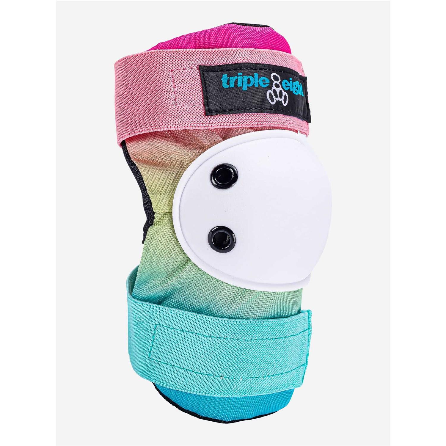 Triple 8’s Saver Series Pad Set includes one pair each of Knee saver Knee Pads, Elbow saver Elbow Pads and Wrist saver Wrist Guards, packaged together in a convenient skateboard pad set. Knee pads and elbow pads are ergonomically designed, and are made of high grade durable fabrics, with EVA foam padding, and polycarbonate full coverage caps for superior protection that wont restrict movement. The wrist guards offer rigid support and protection with high-density, impact-resistant molded ABS splints and tough 4-way stretch nylon mesh for a snug fit. Ideal for skateboarding, biking, roller derby, and inline skating (roller blading), all pads feature an easy on-and-off sleeveless design and wide, reinforced elastic straps with adjustable hook and loop closures that ensure a secure fit. The Triple Eight Saver Series Pad Set is available in four sizes to fit kids, youth, and adults (size determined by wrist guard; measure around the hand at knuckles) Junior fits 7.0-7.5 inches, Small fits 7.5-8.0 inches, Medium fits 8.0-9.0 inches, and Large fits 9.0-10.0 inches.