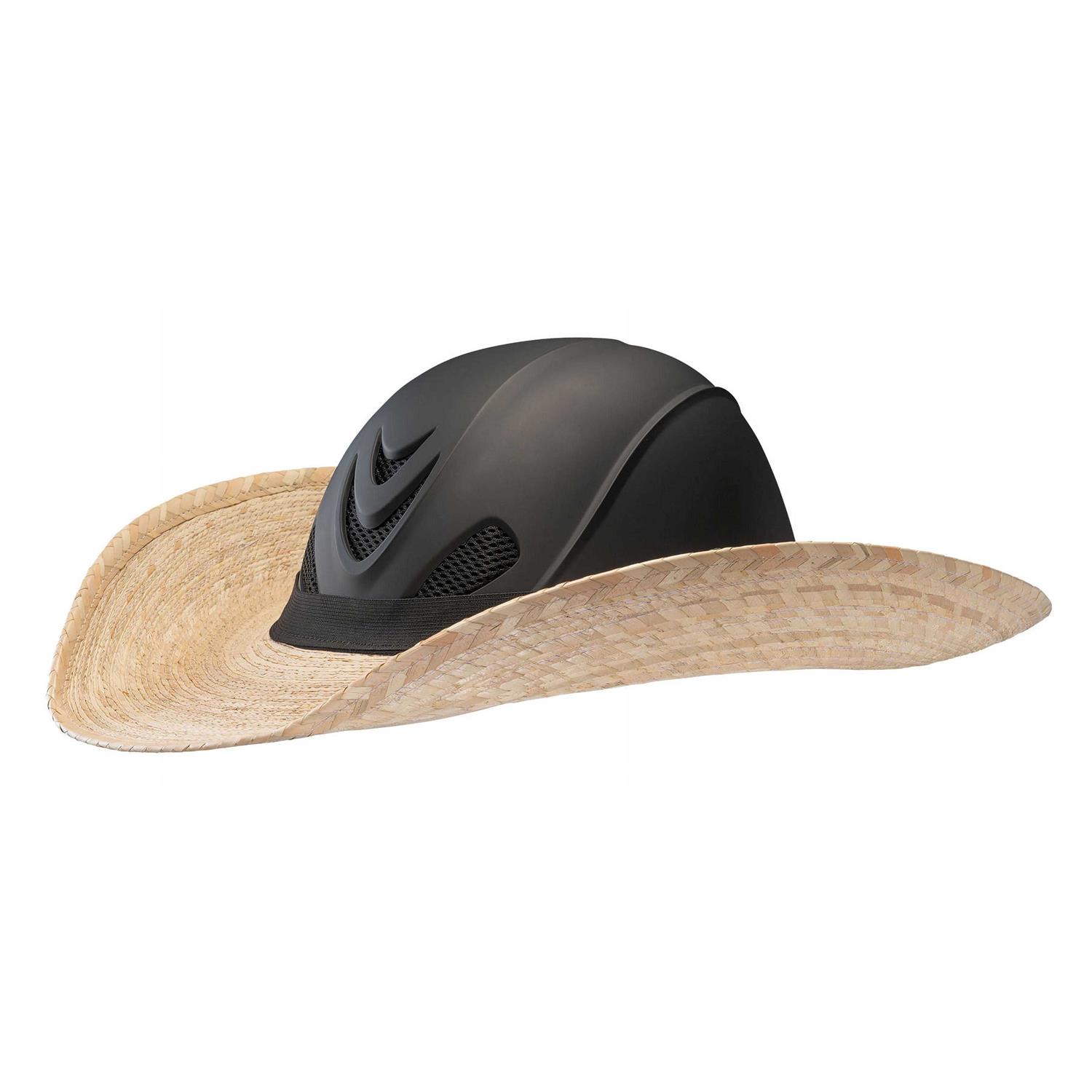 Instantly add full shade and sun protection to most Troxel helmet models with the New Helmet Brimmer. Featuring a full 4 wide genuine palm leaf brim with a patent pending helmet attachment system that allows you to securely attach and remove the Helmet Brimmer. Refer to Helmet Brimmer Size Chart to select size A or B for the helmet style and size that you have. Helmet not included- featured on the Liberty Black and Liberty Tan Duratec.