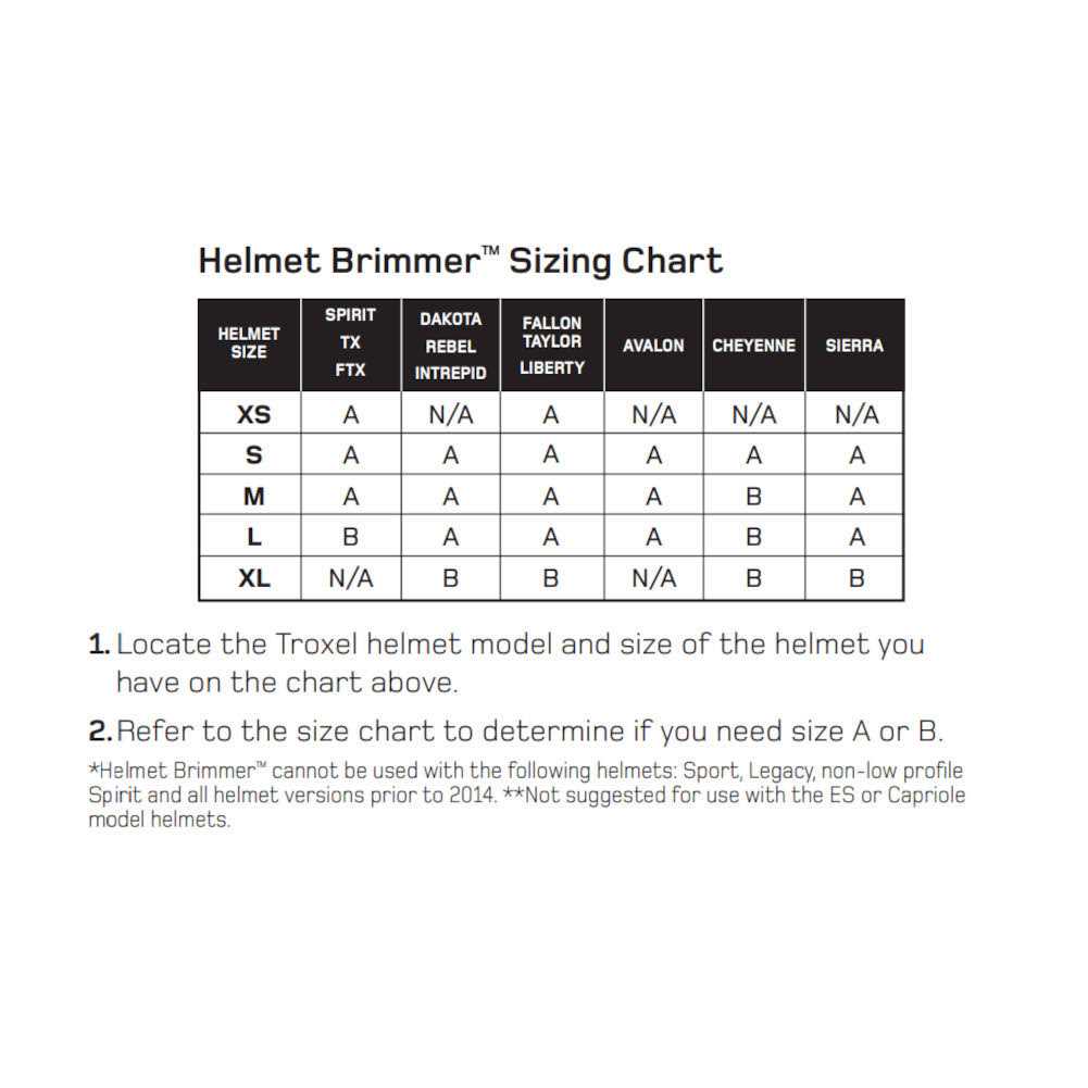 • Refer to Helmet Brimmer Size Chart to select size A or B for the helmet style and size that you have.