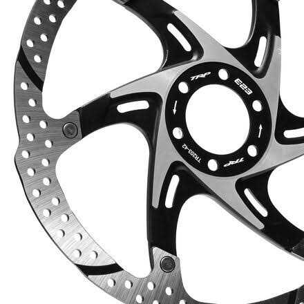 TRP’s two-piece rotors offer superior heat dissipation due to the aluminum center as well as excellent stiffness to provide you with confidence in your braking and lighter weight in 180/203mm sizes. Two-piece is now combined with TRP’s new slotted rotor design now with a 2.3mm thickness for DHR and E-MTB only. Six recessed slots create channels to allow water, mud, and other debris trapped between the pad and rotor to escape under braking. When debris gets trapped between the pad and rotor braking power is dramatically reduced, these recessed slots maintain a more consistent brake feeling in mixed conditions.