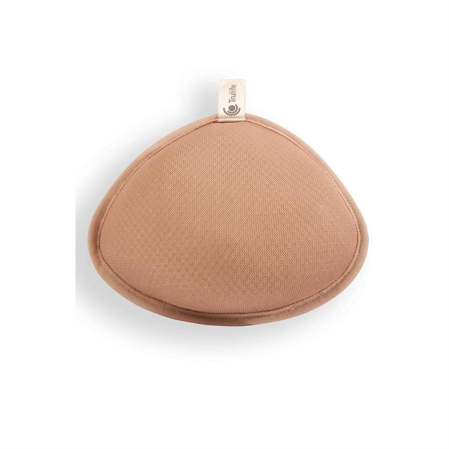 A symmetrical triangle shape with lightweight monoprene beads that do not absorb water and dries quickly. The beads also move and flatten when sun-bathing. A thin layer of vented foam provides support and structure. It is moulded with fast-dry spacer fabric which dries at the same rate as your swimsuit fabric. This form shapes to any bust or swimsuit. Please state bra size when ordering.