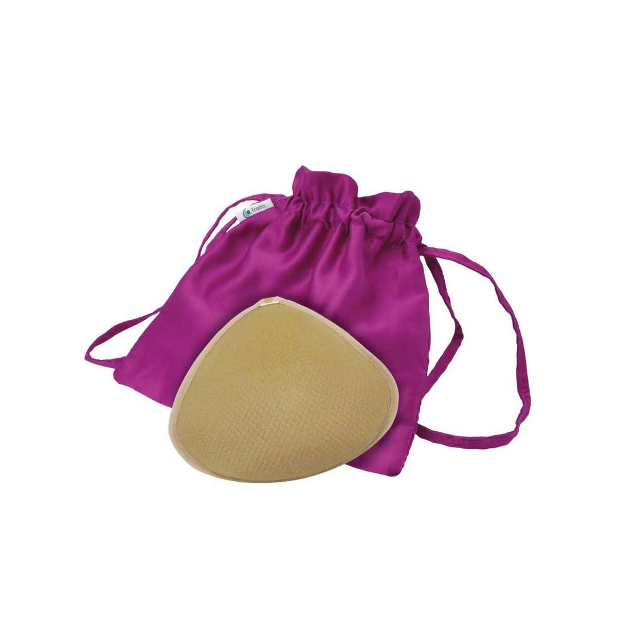 A symmetrical triangle shape with lightweight monoprene beads that do not absorb water and dries quickly. The beads also move and flatten when sun-bathing. A thin layer of vented foam provides support and structure. It is moulded with fast-dry spacer fabric which dries at the same rate as your swimsuit fabric. This form shapes to any bust or swimsuit. Please state bra size when ordering.