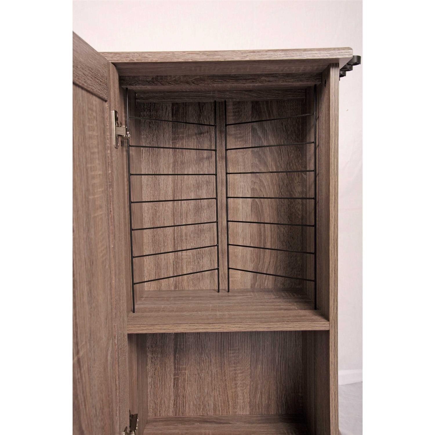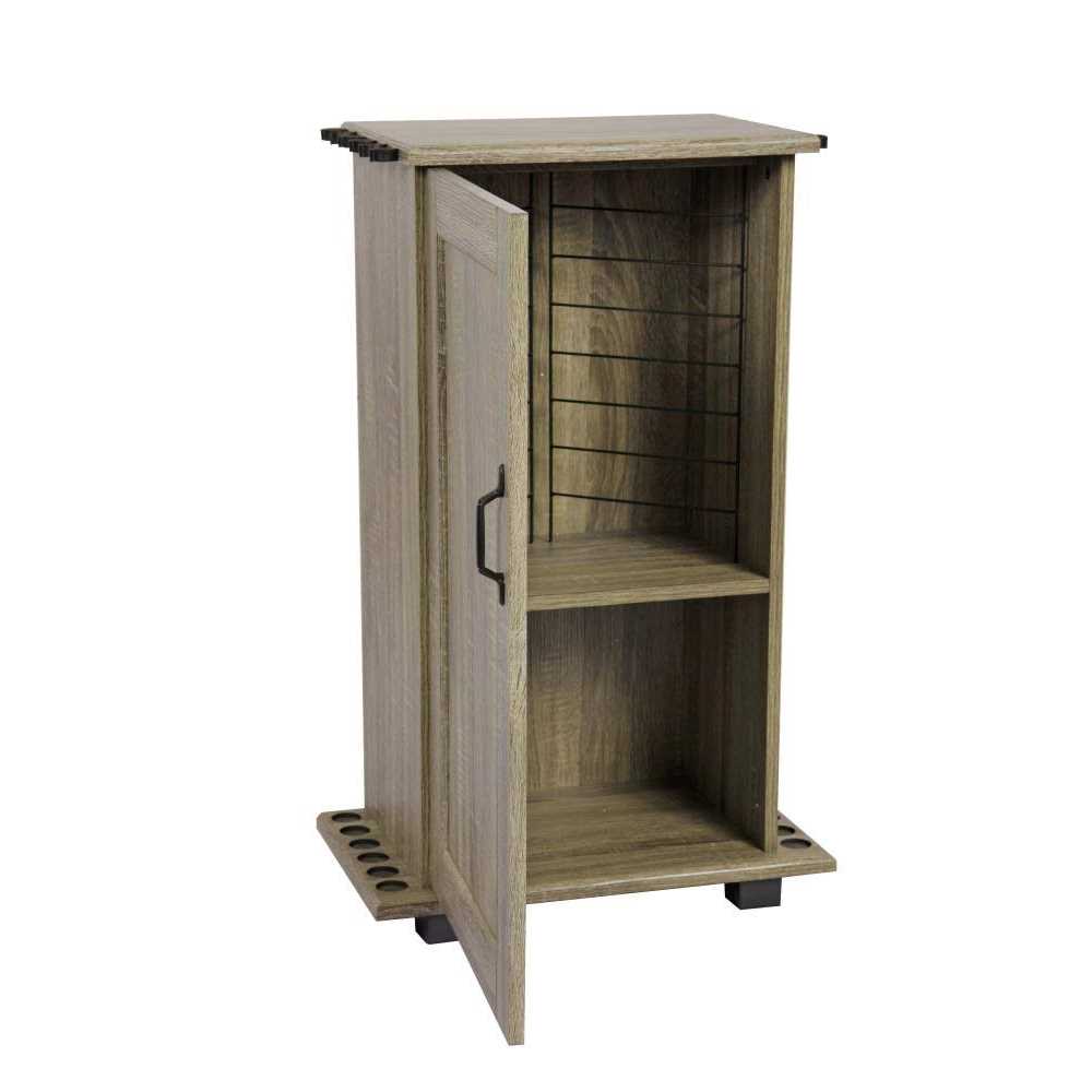 Keep your bait and tackle supplies organized with this Tuff Stor by American Furniture Classics fishing cabinet. Two interior cabinet shelves offer ample room for storing up to eight tackle boxes, and rubber clips hold your fishing rods neatly in place. Dimensions overall height top to bottom 33 inch. Overall width side to side 20.5 inch. Overall depth front to back 12 inch. Overall product weight 28 lbs.
