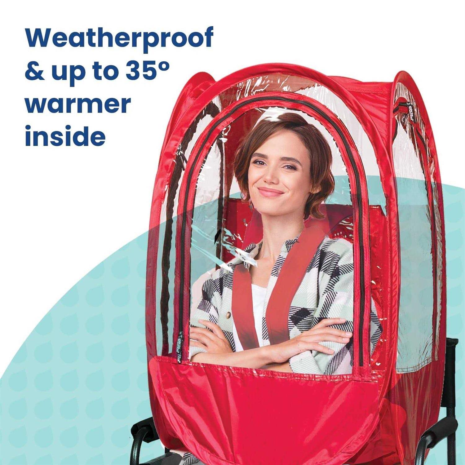 WeatherPod Small Upper-body Pod with Straps– 1-Person Wearable Weather Protection from Cold, Wind and Rain in Stadium Seating or Standing – Red