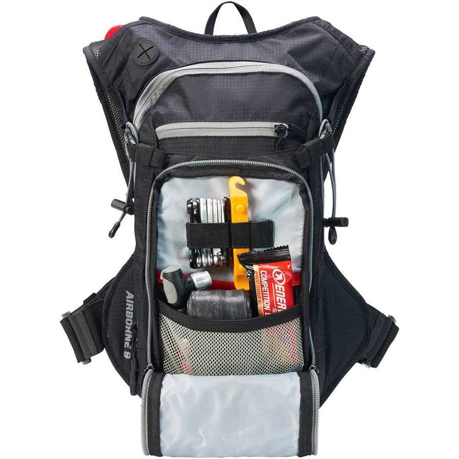 Relentless swinging of hydration packs is not only an annoyance on the trail, it can legitimately hinder your riding by throwing off your weight balance, and causing pain through the back and shoulders. USWE aims to mitigate the bounce with its No Dancing Monkey technology in the Airborne 9L Hydration Pack. The Airborne 9L makes for an ideal day pack, thanks to its lofty 3-liter hydration reservoir, and ample pocket space for stashing your tools, snacks, and phone — but where the pack really excels is in eliminating bounce and sway while you ride. That’s because USWE employs the NDM Race Suspension Harness, rather than the traditional waist and chest belt, to secure the pack in place. NDM fastens to your chest with stretchy straps and hook-and-loop tabs, so you can dial in the fit without feeling restricted. The straps adjust massively, accommodating riders size medium through extra-large, securing snugly around a chest between 33 and 44-inches. The pack keeps comfort going beyond the suspension harness with high vent foam shoulder straps, and a ventilated back panel with anti-slip ridges to help channel cool air towards your core. Inside the pack you’ll find a Hydrapak Elite 3. 0-liter bladder, capable of stowing all of the life-giving liquid you need for a hefty ride that packs in the miles. The Hydrapak Elite uses a slide-seal top that opens wide for easy filling, and securely closes for a leak-proof seal. It’s fully reversible, making cleaning and drying a breeze, plus its dishwasher safe, so you can be sure to kill any of those lingering flavors from water you forgot to drain out at the end of last season. Beyond the reservoir, the Airborne 9L offers you an assortment of organization pockets, with water-resistant media pockets, mesh pockets for spare tubes and CO2, and elastic straps that keep your multi tool and tire levers right where you need them, when you need them.
